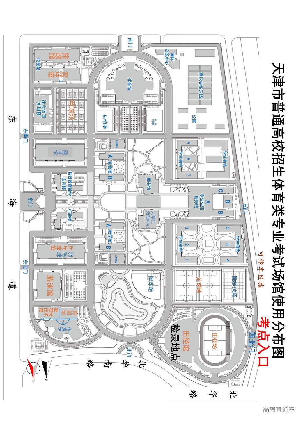 天津体育学院新校区(静海区团泊新城西区东海道16号)。考试当天,考生须从学校西北门进入考点。