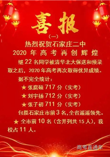 清北保送和预录取人数22人,高考成绩包揽石家庄市前三名。