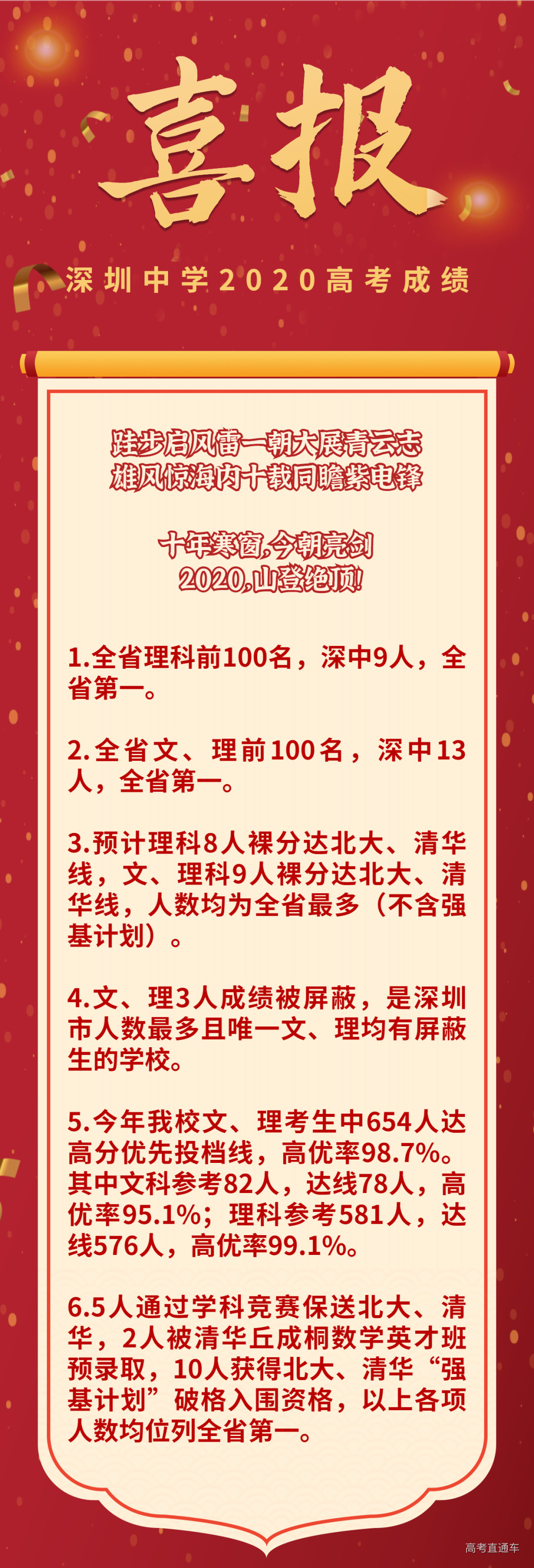 2.2020届理科共8名同学(陈隧、郑旭、吴宇森、庄鸿伟、郭少瑛、陈弘烨、何尧、吴越进入全省前100名。其中全省前50名占6名。