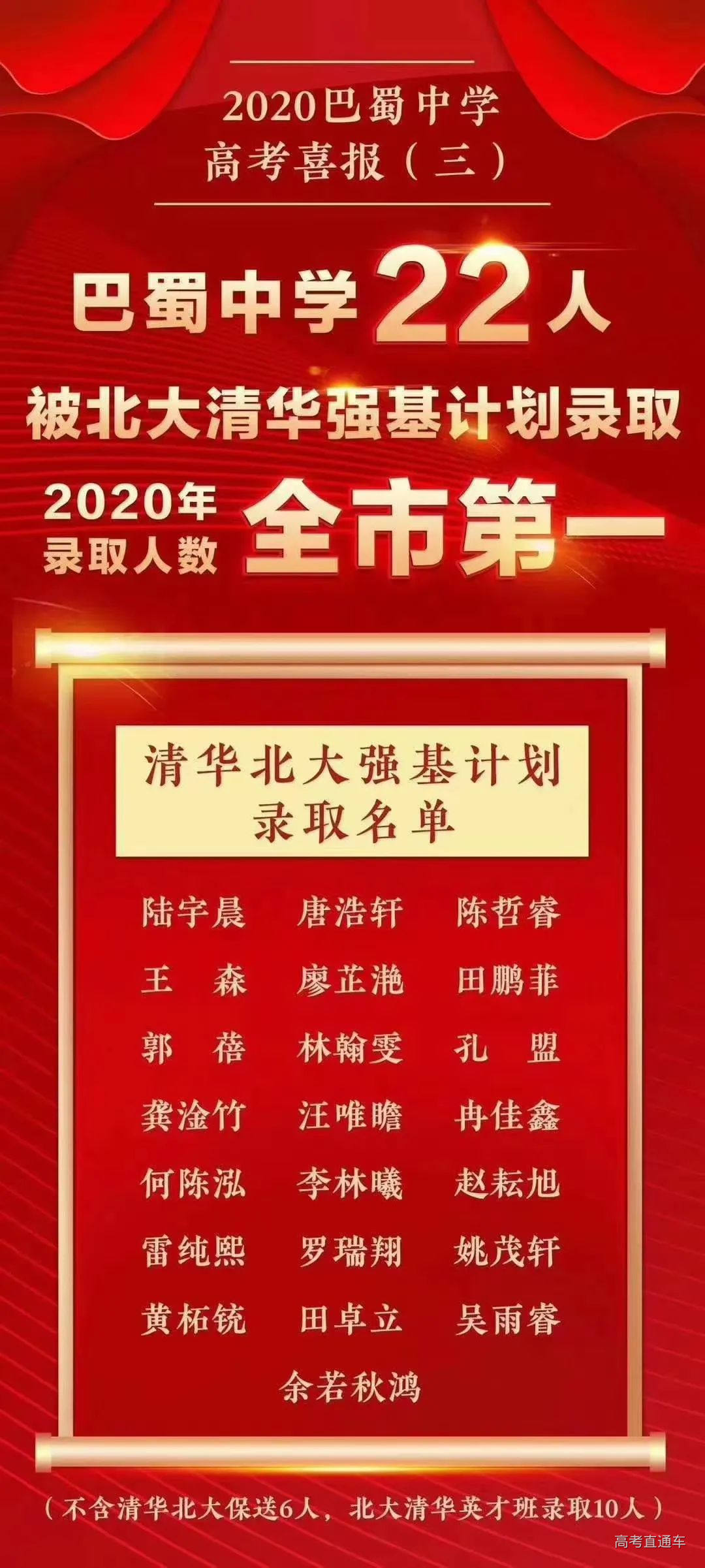 说明:本文各中学2020年高考录取数据,来源于2020年中学高考喜报及网络,文中所示清北录取人数非最终录取数据。如您了解官方数据信息,欢迎留言区分享讨论。