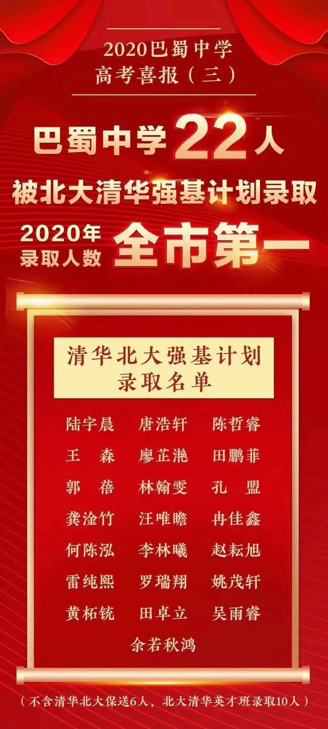 保守估计,今年将勇破重庆市有史以来单校66人清北的最高纪录,将达到75人左右