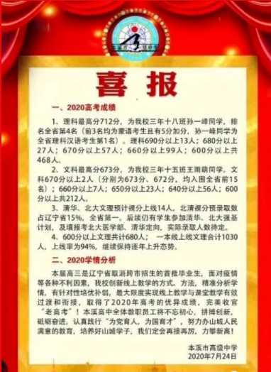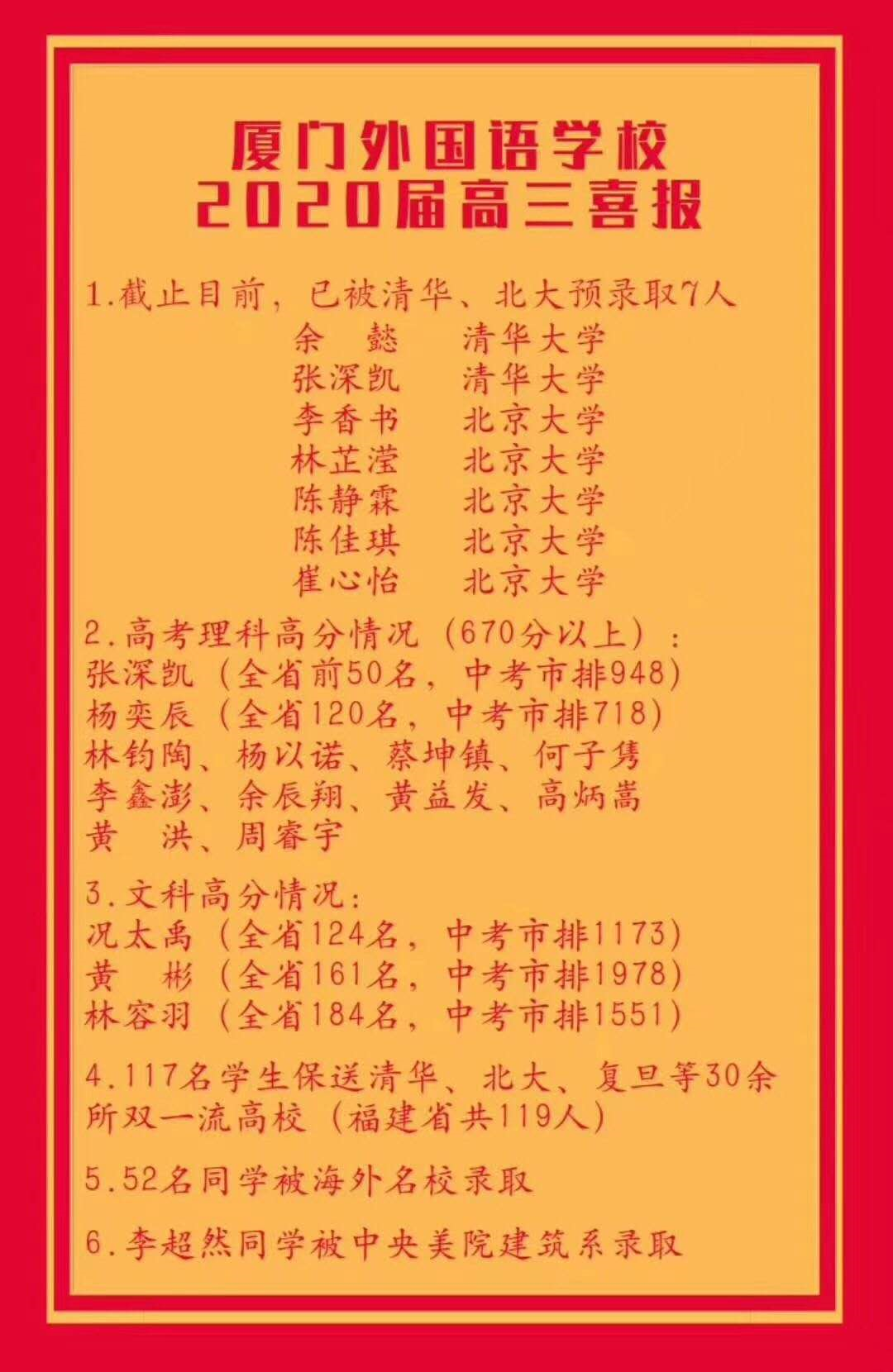 1. 厦门双十中学2020届16班林润澜同学以668分勇夺文科省第一