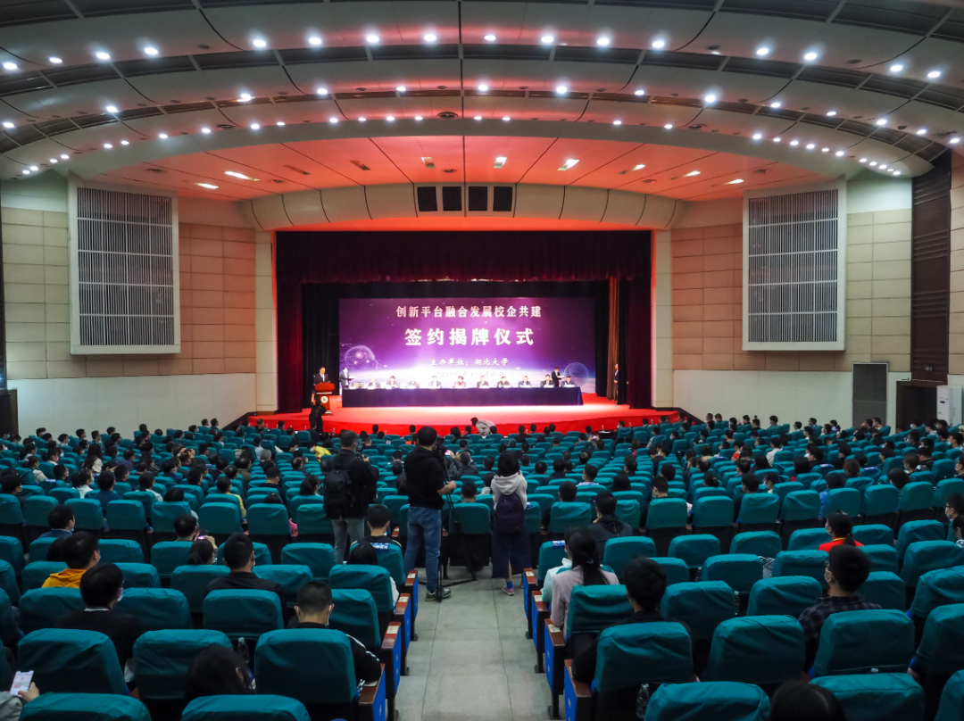 11月6日,湖北大学举行创新平台融合发展校企共建签约揭牌仪式,湖北大学微电子学院、网络空间安全学院、人工智能学院、新能源科学与技术研究院等4个新工科学院揭牌成立,全国16家行业领军企业与湖北大学新工科学院签署校企共建协议。湖北省人民政府副省长肖菊华、中国工程院院士吴汉明出席揭牌仪式并讲话,湖北省人民政府有关部门和企业代表出席仪式。湖北大学全体校领导和师生代表参加仪式。![]()