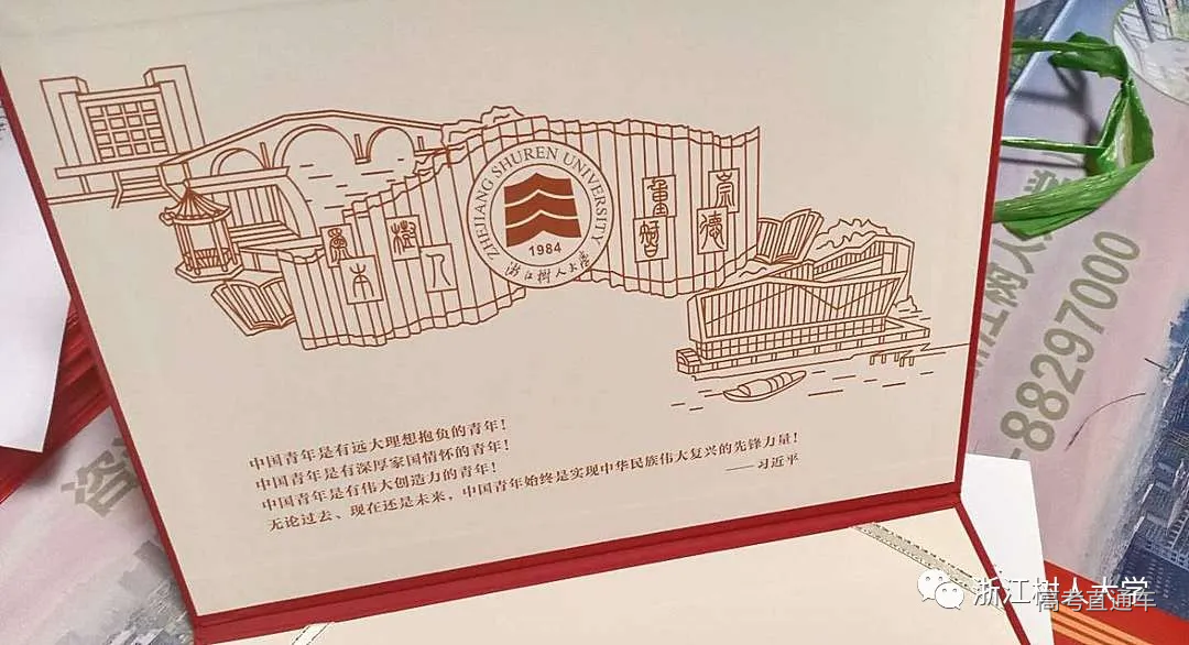 浙江树人学院第一批录取通知书属于专升本的小萌新。红彤彤的封面藏着热烈的喜悦与期盼,浙江树人大学与录取通知书一左一右,仿佛张开双臂欢迎着你,素简的线条勾勒着两个校区的美景。杭州校区、杨汛桥的越湖与图书馆,不能马上观赏校园美景那就先认认脸。