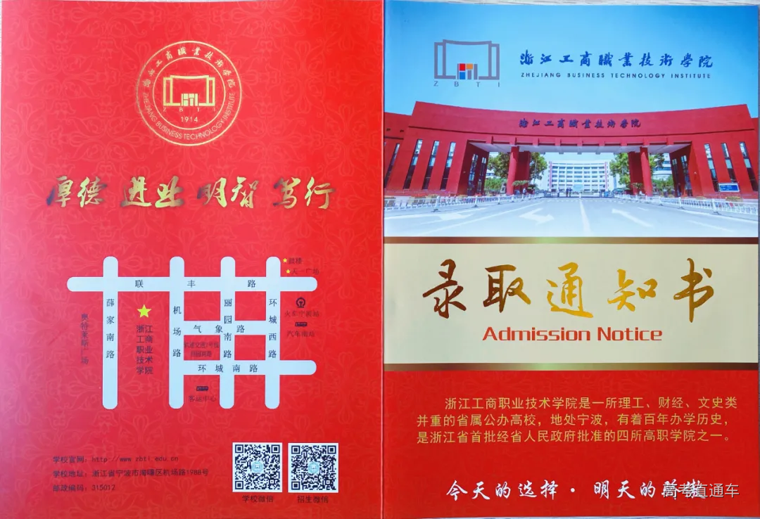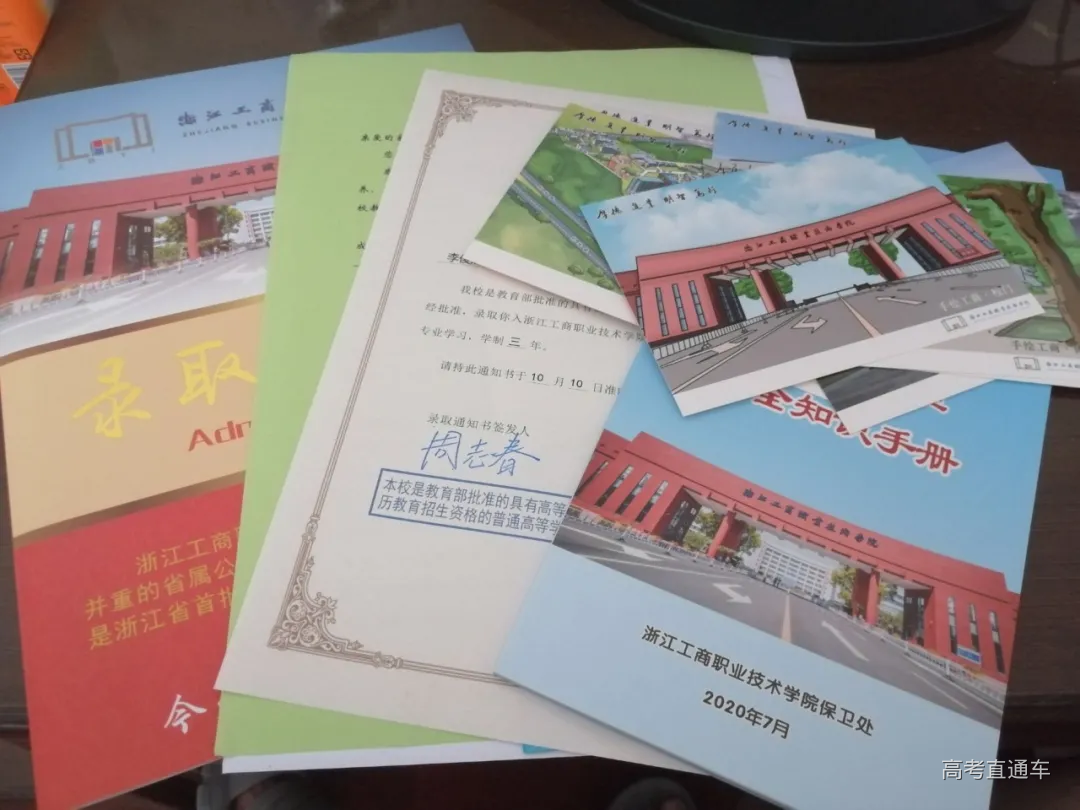 浙江工商职业技术学院第一批录取通知书已顺利寄出。工商明信片、录取通知书、安全知识手册、新生入学须知、学生体质健康调查表、大学新生应征入伍宣传页、告家长书、“国家资助,助你飞翔”……承载了许多沉甸甸的梦想和期待,一份份厚厚的信封大礼包仿佛在诉说着,欢迎加入工商大家庭,成为ZBTIER。