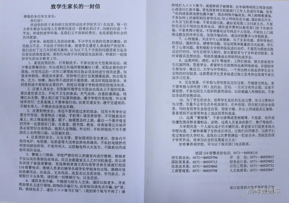 首批本科录取通知书发放对象为浙江省单考单招、专升本考生,内含录取通知书、2020年新生入学手册、高校本专科学生资助政策简介、大学生应征入伍宣传单。