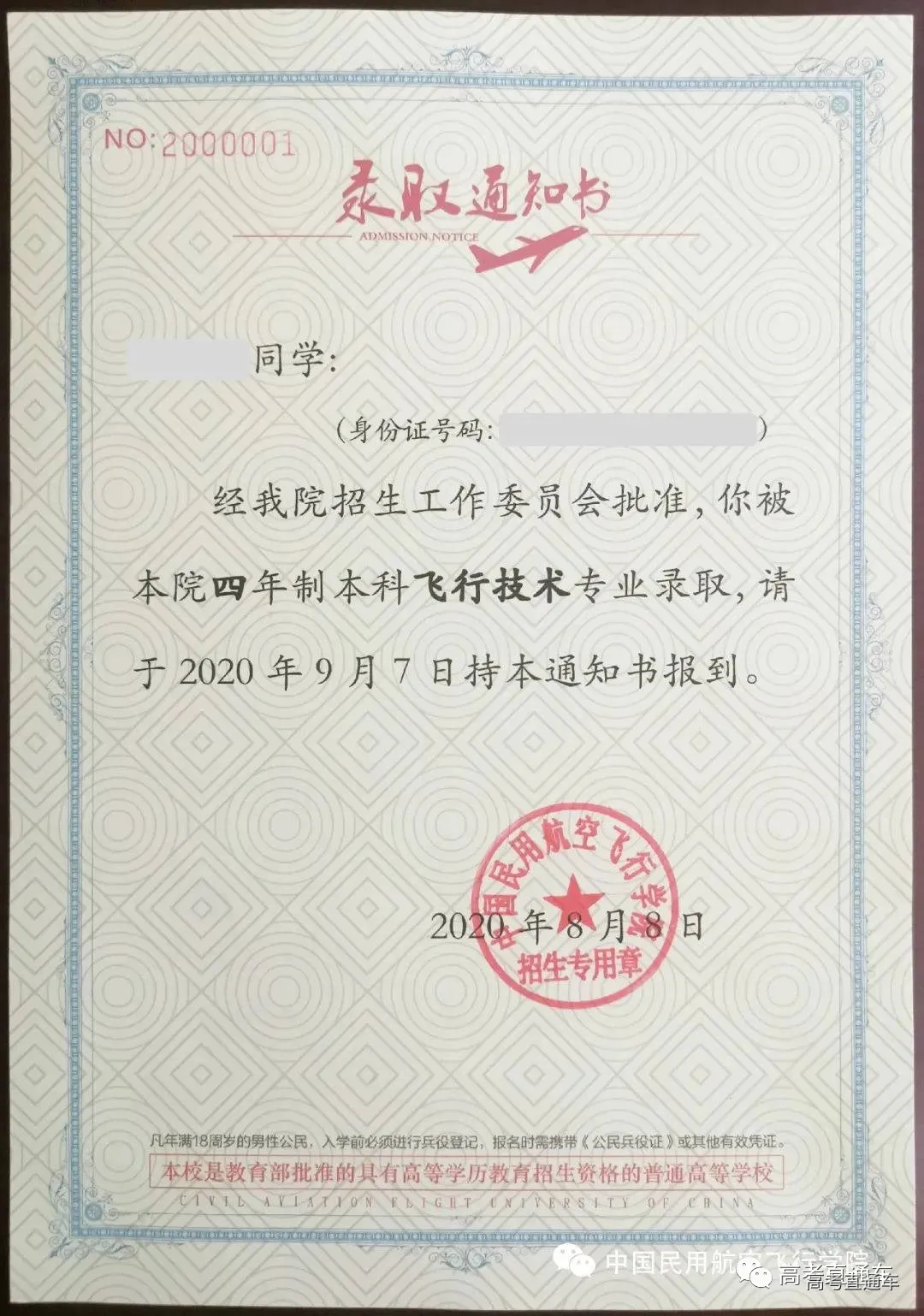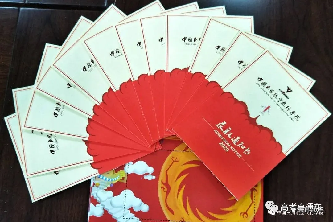 今年的录取通知书封面,融合了鲜明动感的航空元素,一架飞机冲破云霄,翱翔于苍穹,象征着每一位中飞院新生将在此乘风破浪,开启人生旅途的一段锦绣航程。