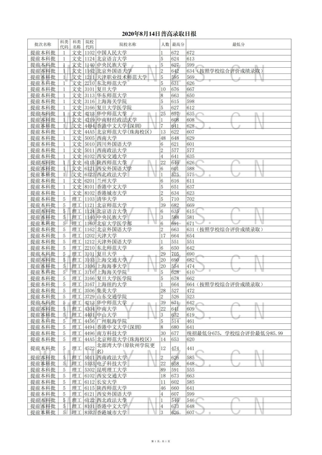 8月14日,云南省招生考试院发布提前本科批高考录取日报。