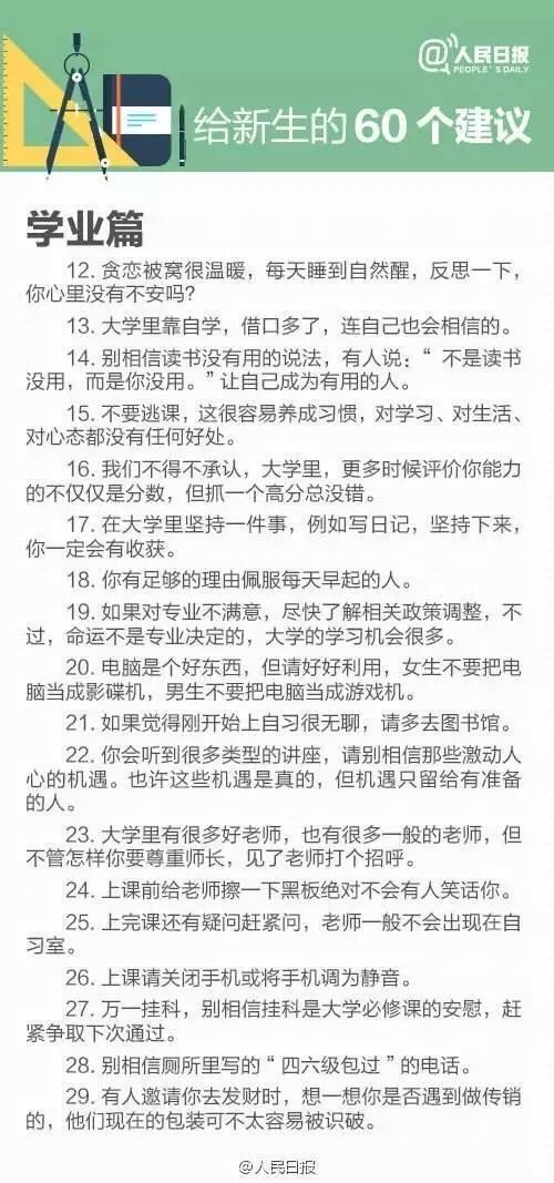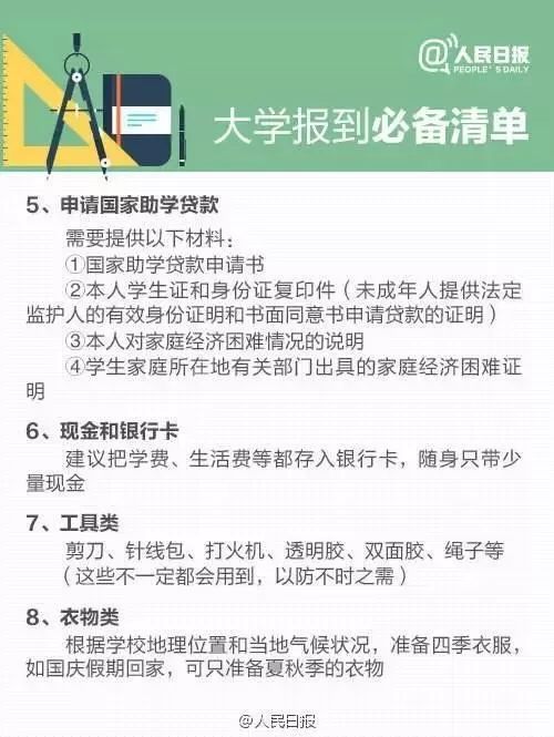 以下是人民日报发布的大学报到必备清单,如有重复可忽略哦!