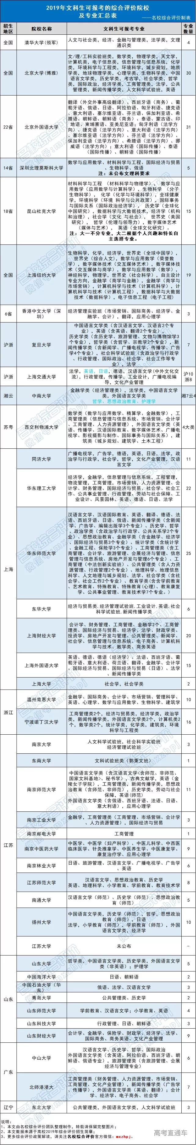 文科生、偏文科生可报考的综合评价院校及专业: