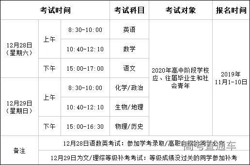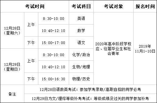 2019年12月28日-29日,进行普通高中学业水平考试;