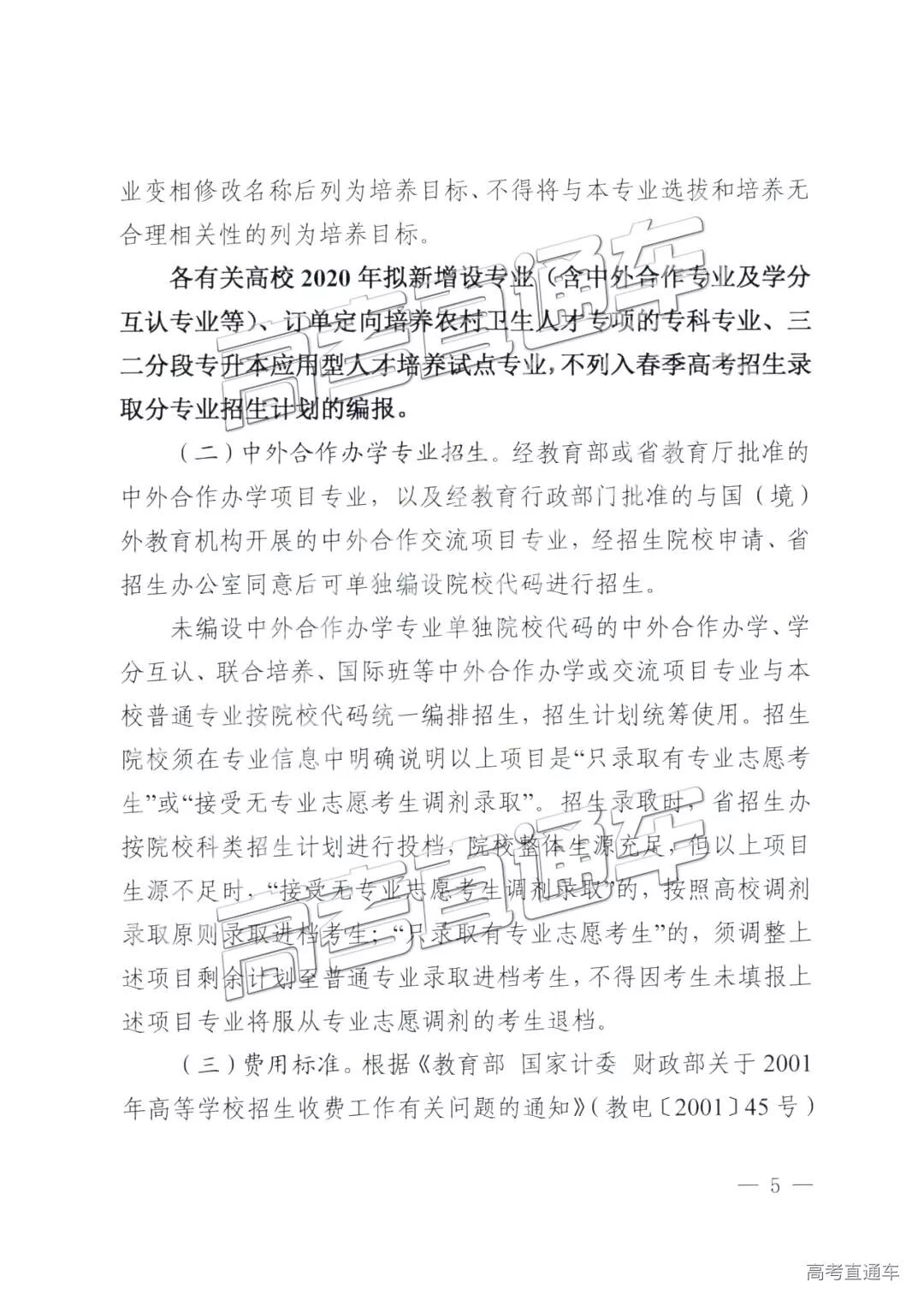 从2020,省内各高职院校安排春季高考的招生计划原则上要达到年度招生计划的75%以上,其中依学考成绩录取占50%,“3+证书”占20%,高职自招(招收中职生)占5%。