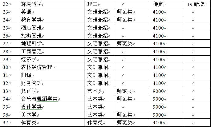 第九条 学校继续推行“大类+专业”招生模式。大类专业包含:“教育学类”(学前教育、小学教育);体育学类(含体育教育、社会体育指导与管理);设计学类(含产品设计、环境设计);音乐与舞蹈学类(含音乐学、音乐表演)。其他专业按原有招生计划执行。
