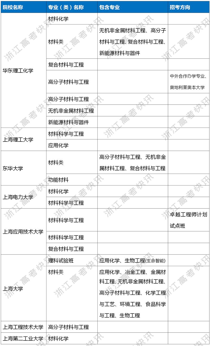 2020年上海本地大学专业选考必选化学汇总