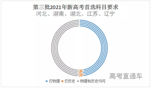 说明:本文仅统计河北、湖南、湖北、江苏、辽宁5省2021年新高考选考要求数据,广东、重庆、福建3省本文暂不统计。