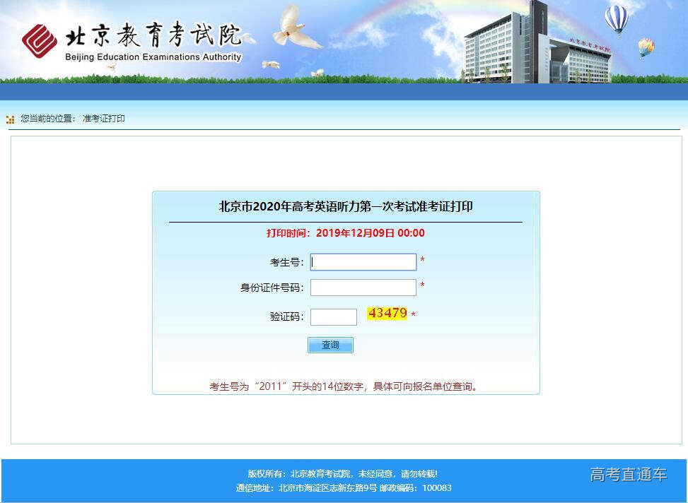 2020年北京高考英语听力机考第一次考试准考证打印网址: