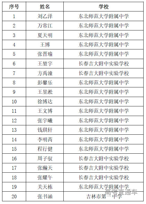 第36届全国中学生化学竞赛决赛省队名单(吉林)
