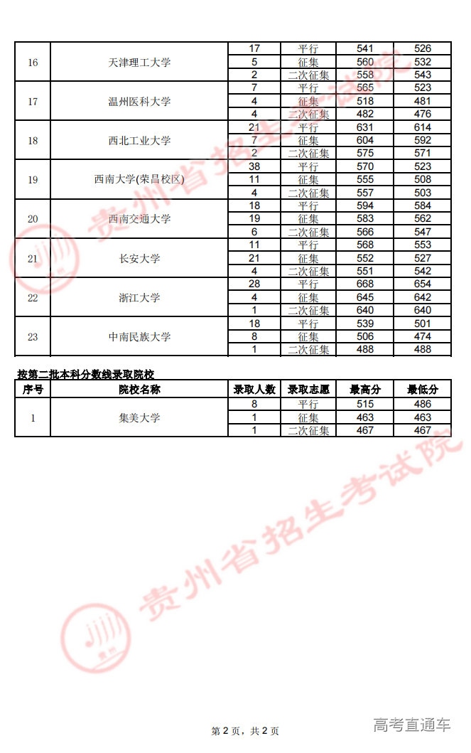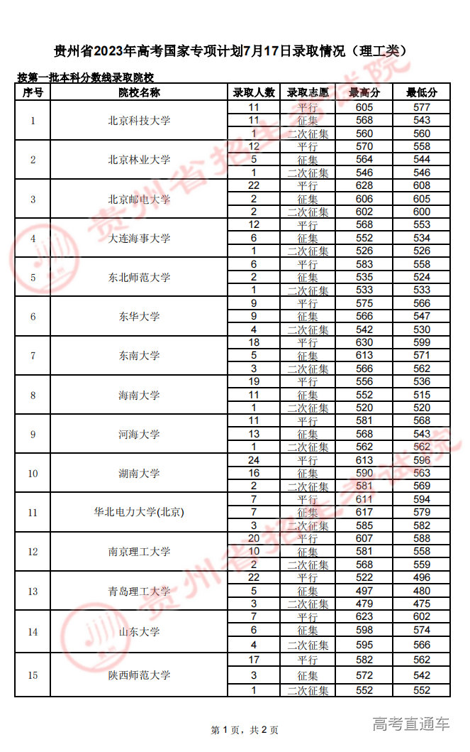 贵州省2023年高考国家专项计划录取情况(7月17日)