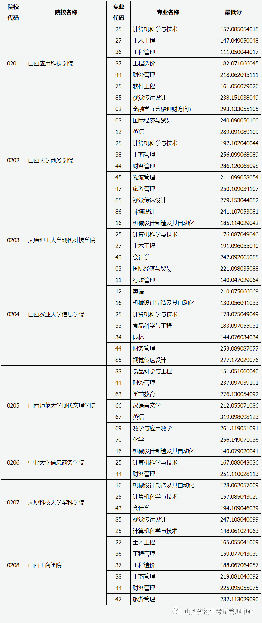 注:按录取总成绩排序,小数点后1-3位为科目一(专业综合)成绩,4-6位为科目二(英语)成绩,7-9位为科目三(公共基础)成绩。