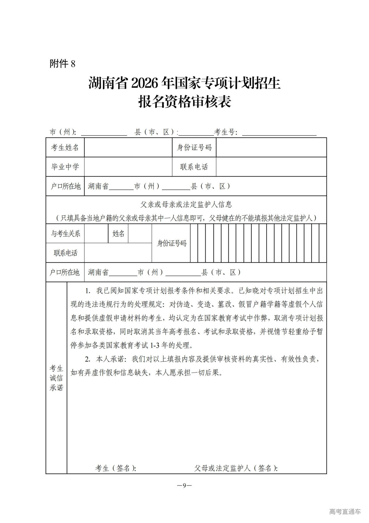 8.国家专项计划招生报名资格审核表
