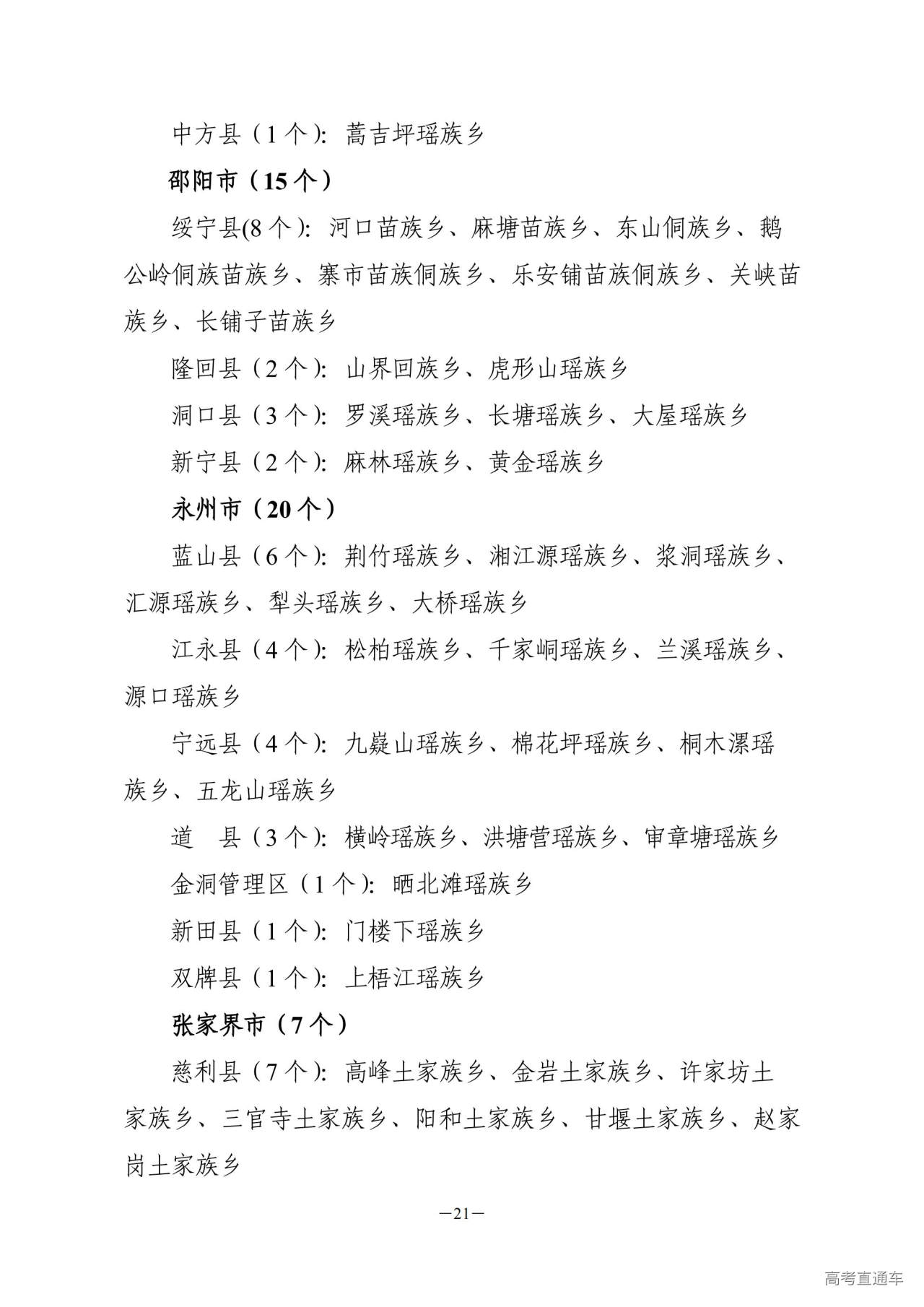 5.我省民族自治地方(含少数民族自治州、自治县及经国家批准享受民族自治地方优惠政策待遇的张家界市永定区、武陵源区和桑植县,下同)的少数民族考生,可以加10分。