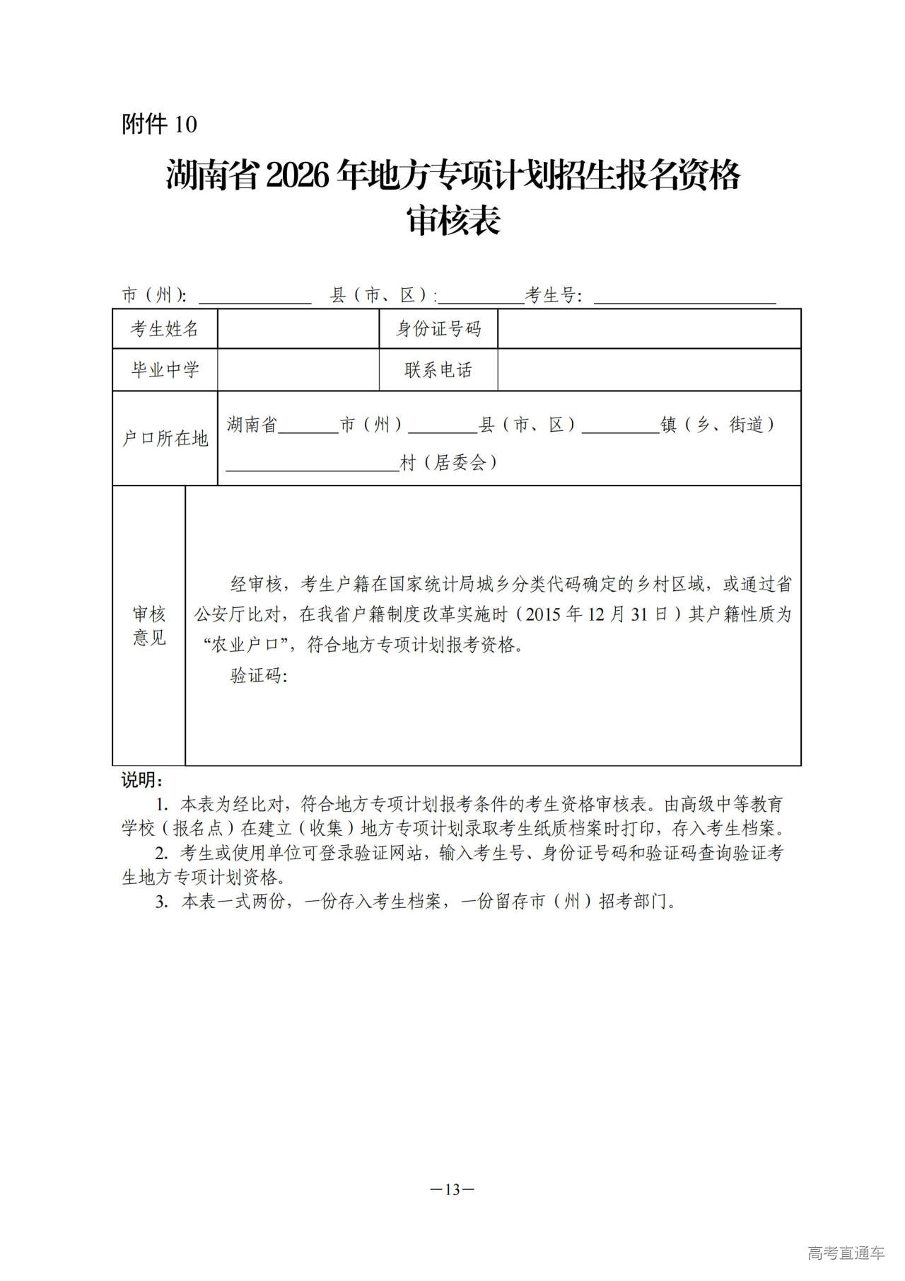 10.地方专项计划招生报名资格审核表