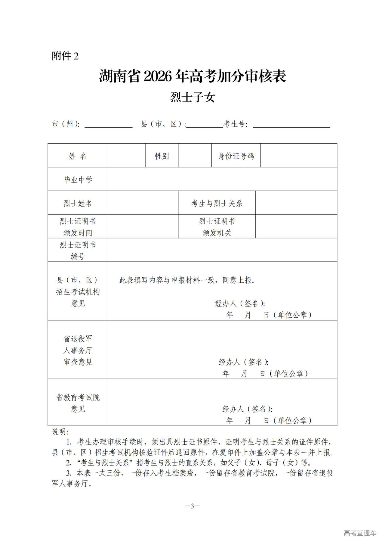 2.烈士子女高考加分审核表