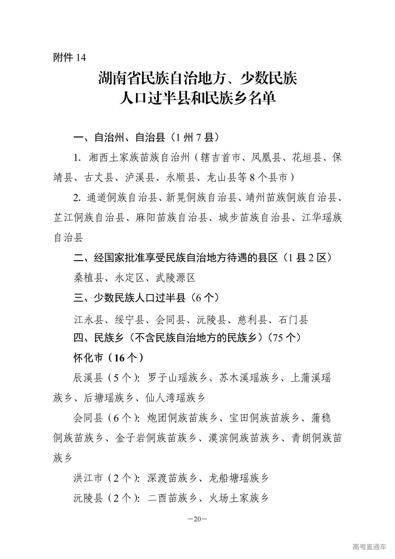 14.湖南省民族自治地方、少数民族人口过半县和民族乡名单