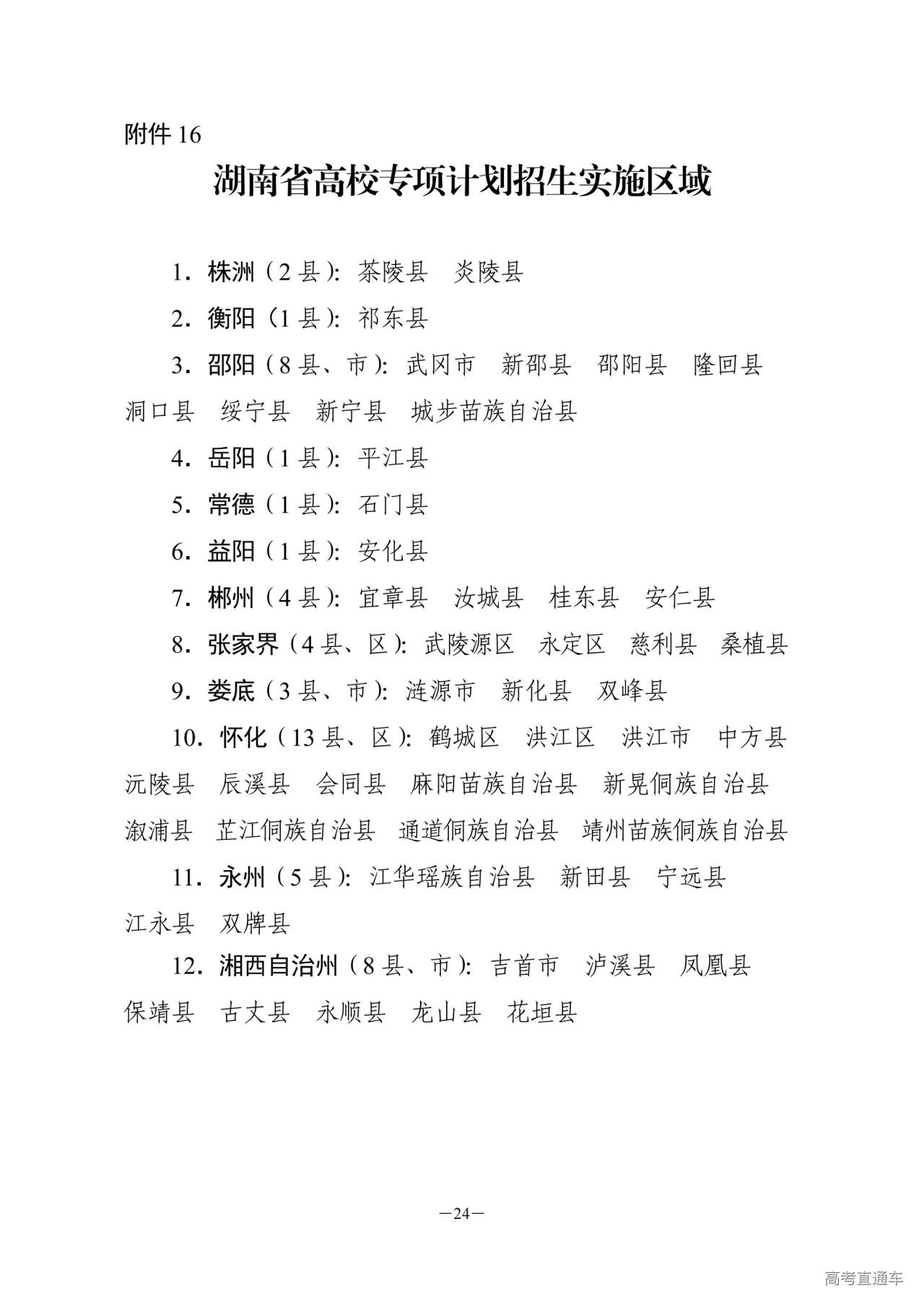 16.湖南省高校专项计划招生实施区域