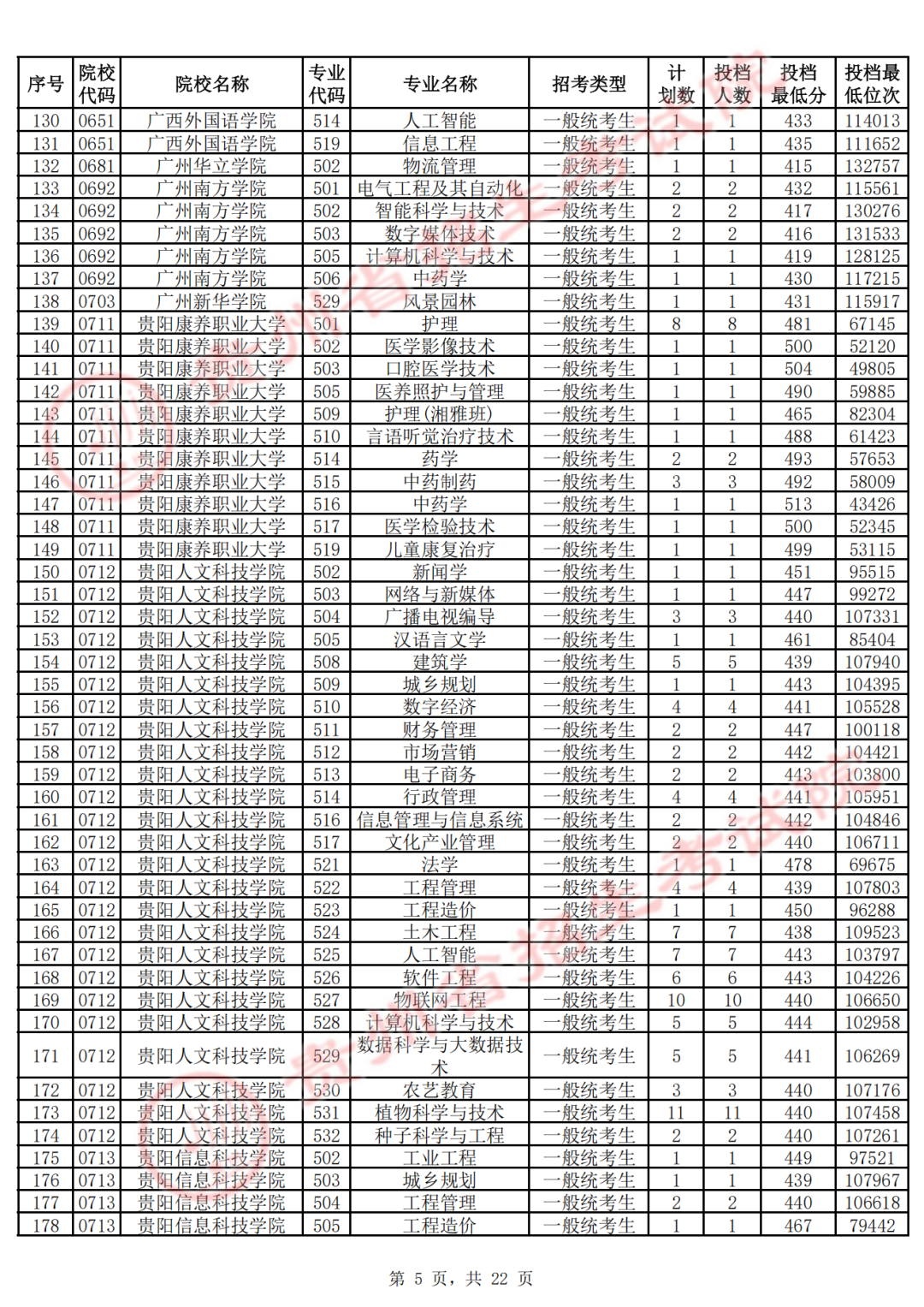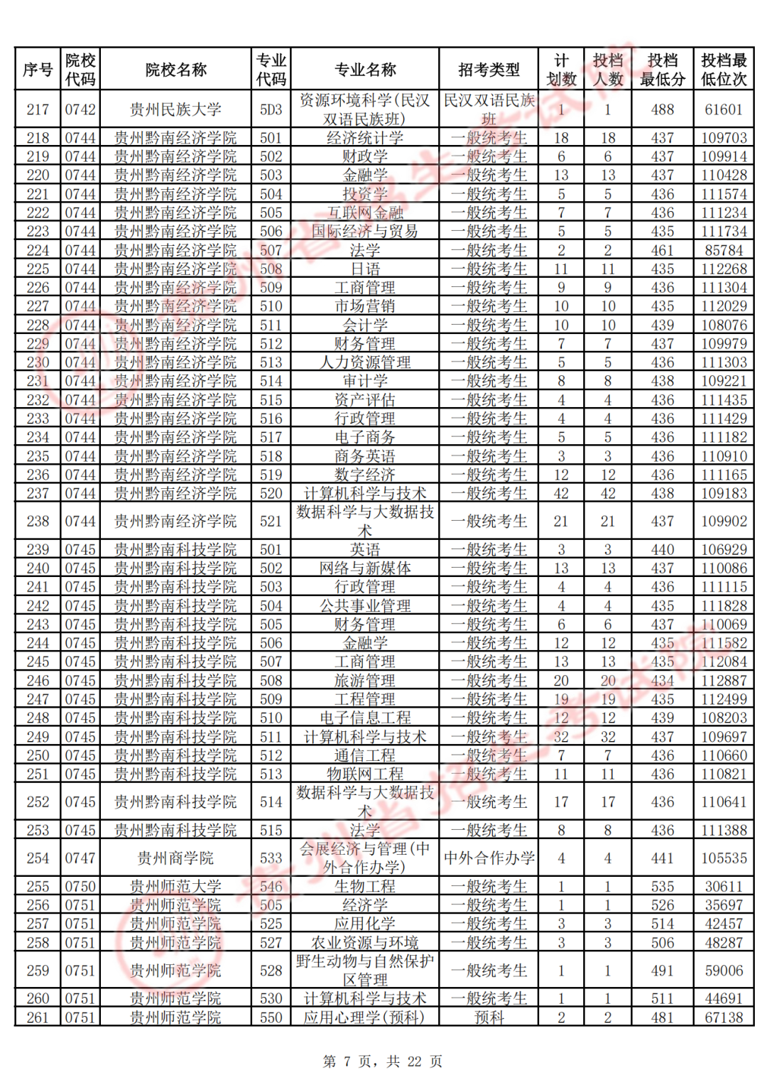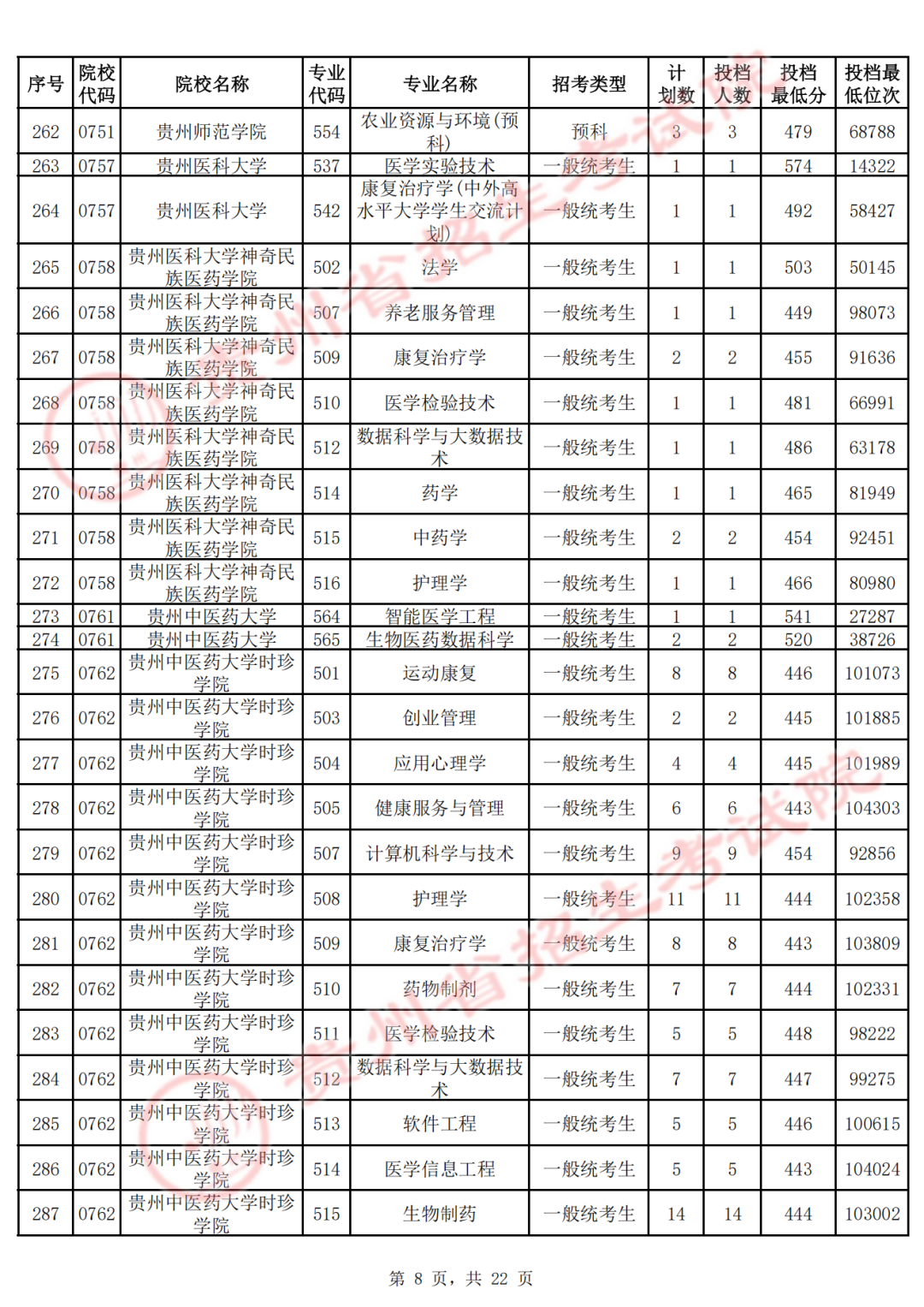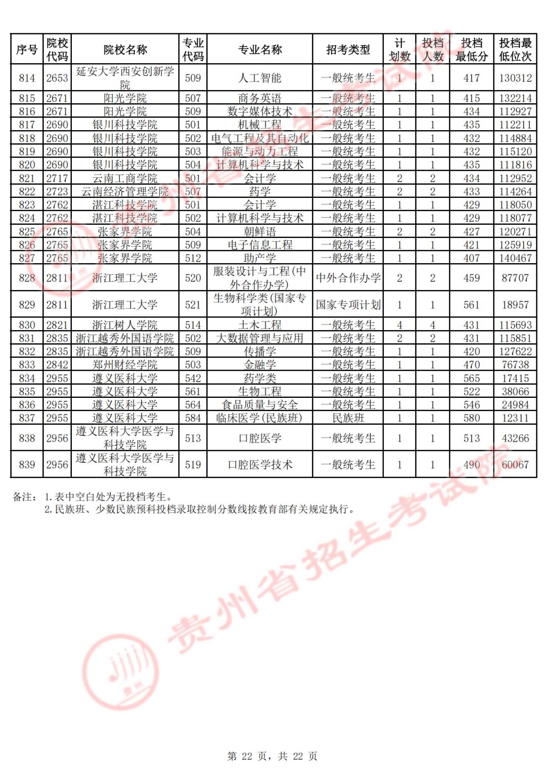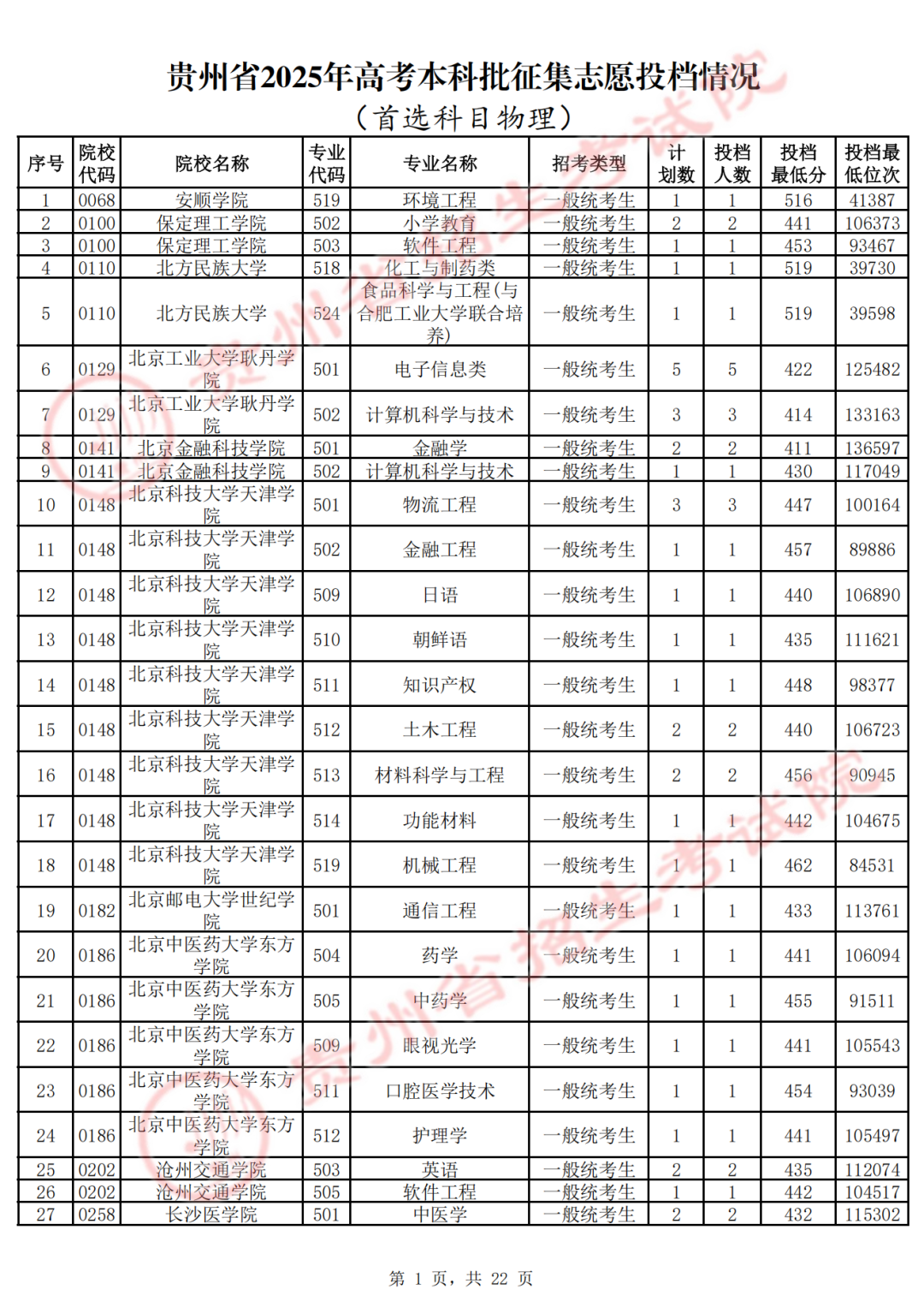 贵州2025年高考本科批征集志愿投档情况(物理类)