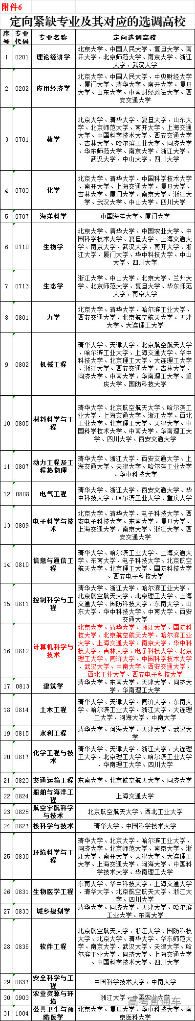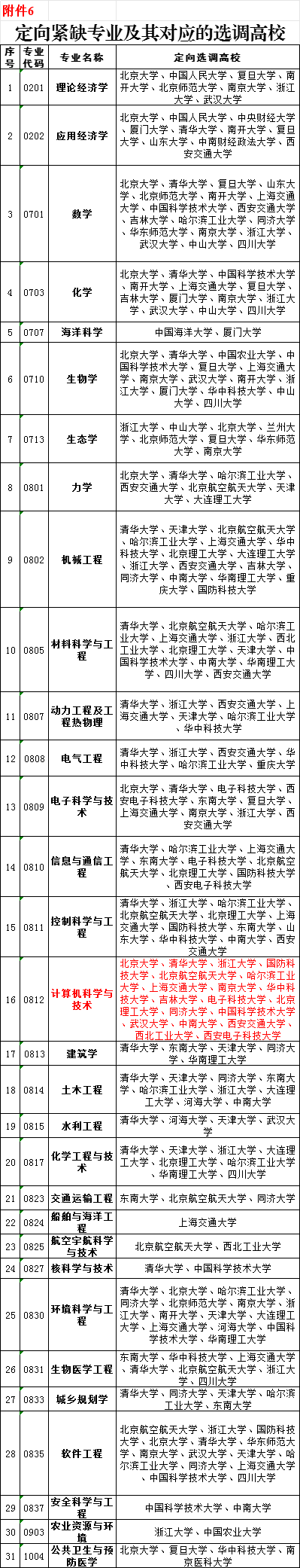 6.定向紧缺专业及其对应的选调高校