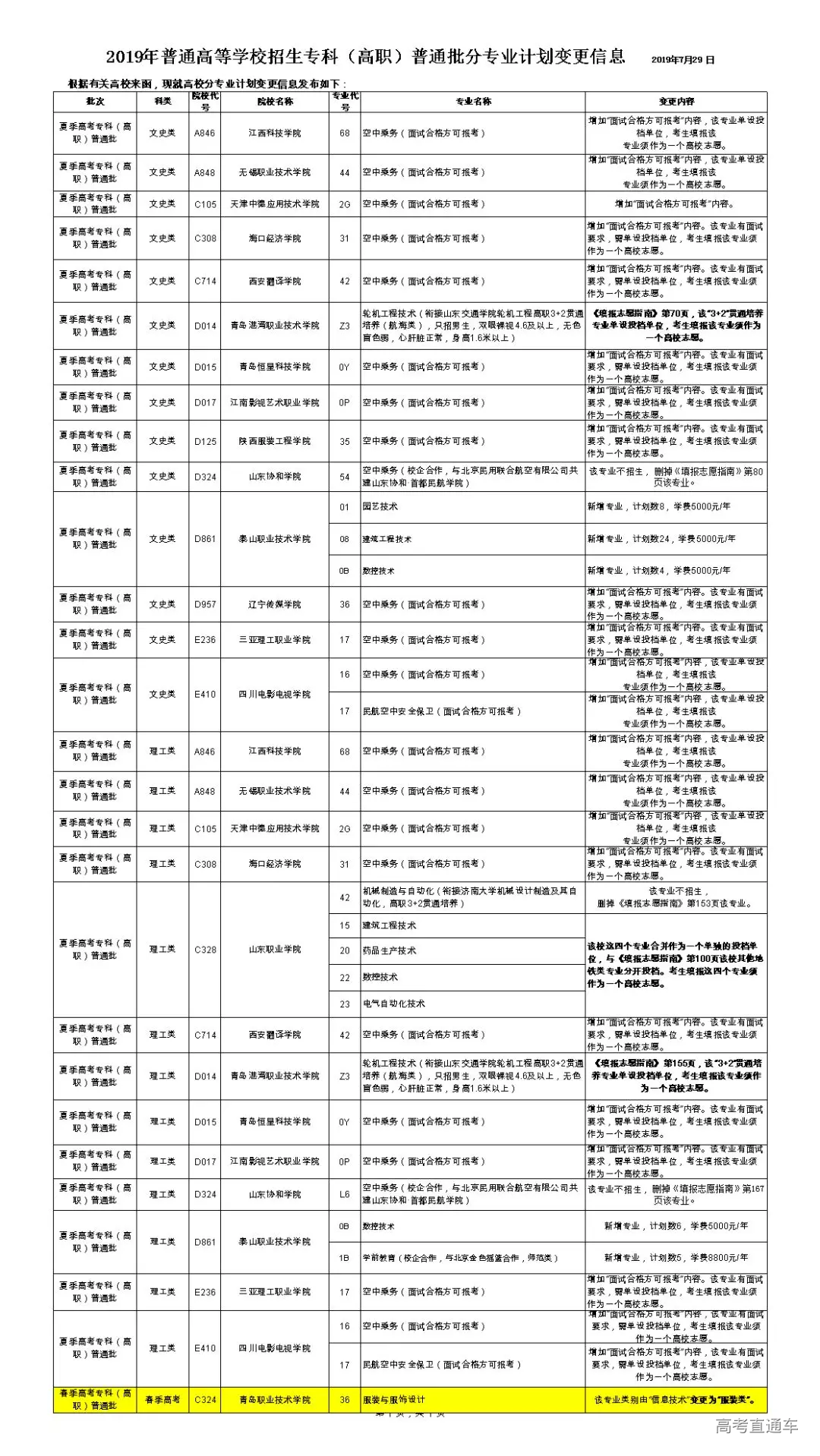 可点开图片放大查看 填报事项须知2019年普通高等学校分专业计划变更信息(专科(高职)普通批)