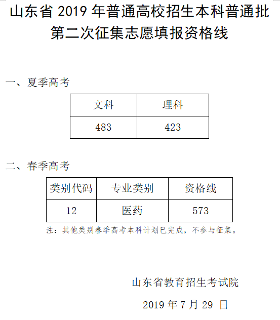 春季高考本科批第二次征集志愿填报资格线为我省首次确定的春季高考本科批相应专业类别录取控制分数线下20分(即医药类573分),未被录取的相应类别的考生可以填报。