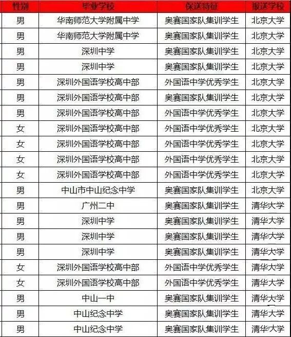 近日,阳光高考公示了2019年高校保送生名单。其中,清华大学、北京大学保送生广东共21人,一起来看看这些学霸都是来自哪里的吧!