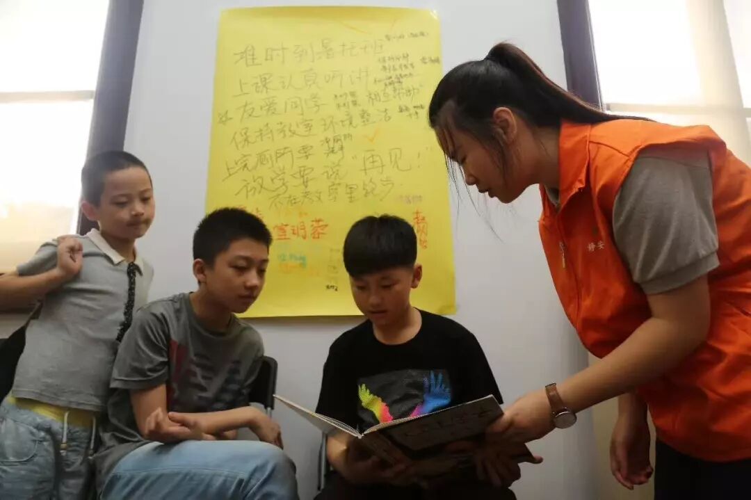 ▲高考综合改革激励更多青少年积极参与社会实践、志愿服务和公益劳动。图为爱心暑托班的高中生志愿者在为孩子们贴心服务。(陆嘉辉 摄)