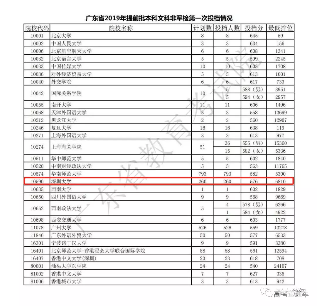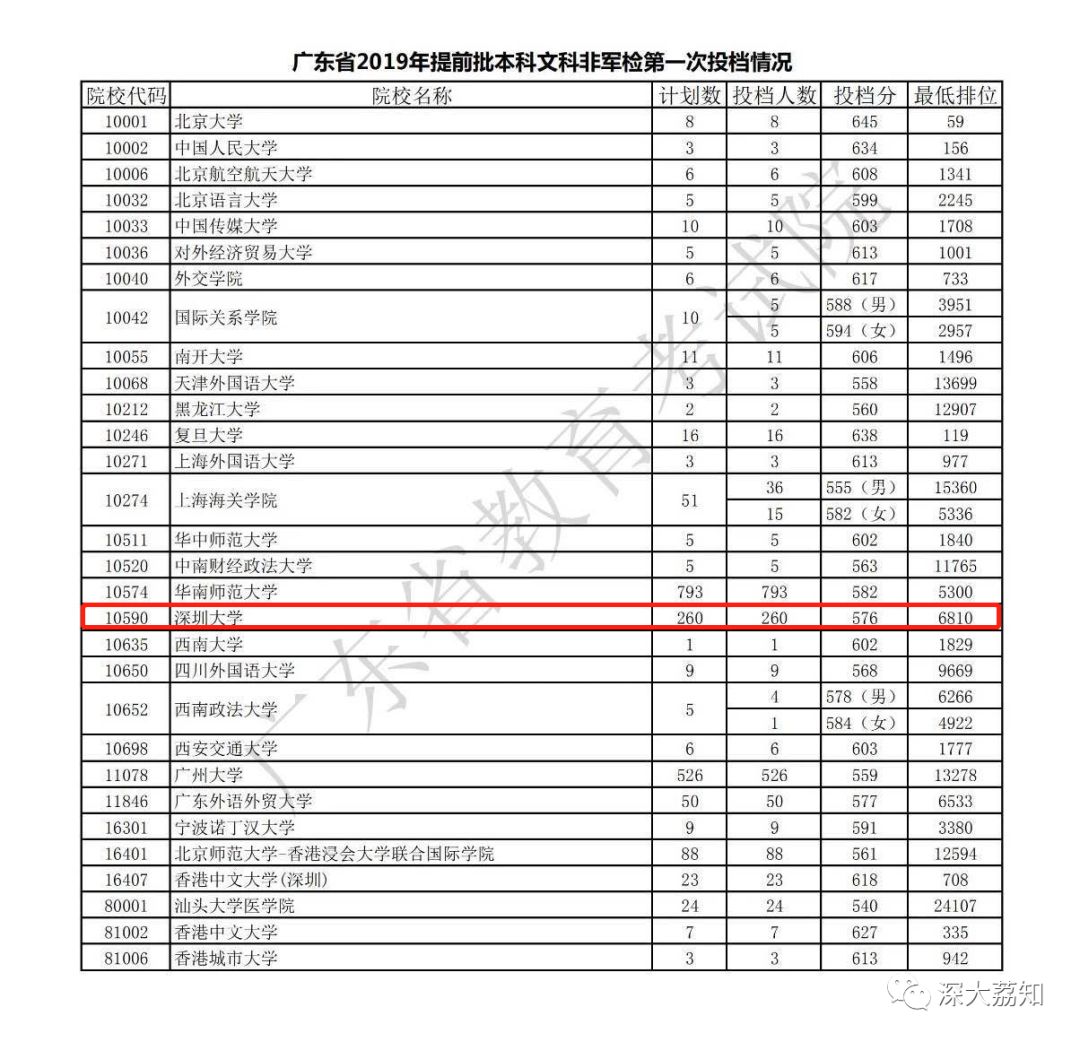 刚刚广东省教育考试院公布了广东省提前批非军检院校投档分数,今年深大第二次在提前批招生,让我们来看看深大提前批的分数线吧~