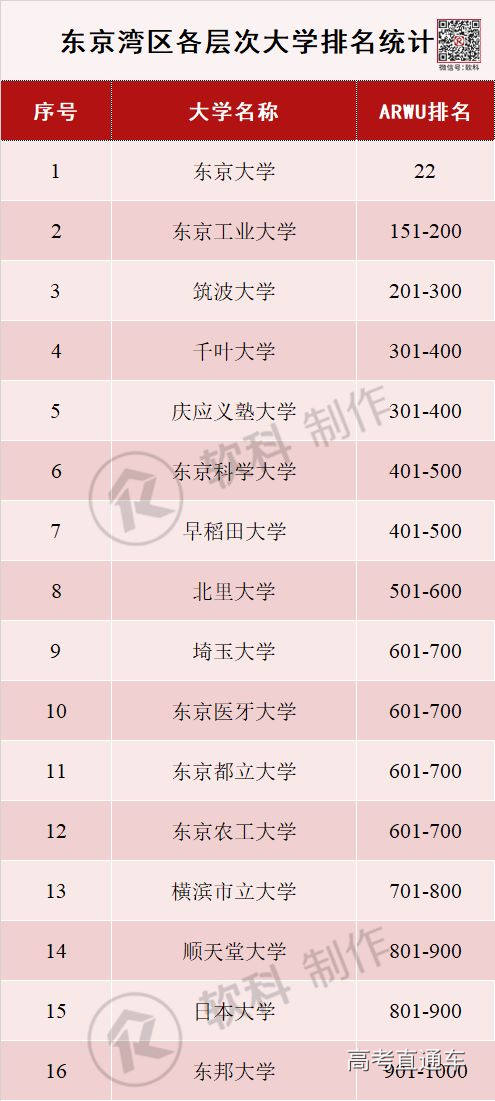 东京湾区坐落着16所上榜高校,其中东京大学排名全球22位,也是亚洲排名第一的高等学府。