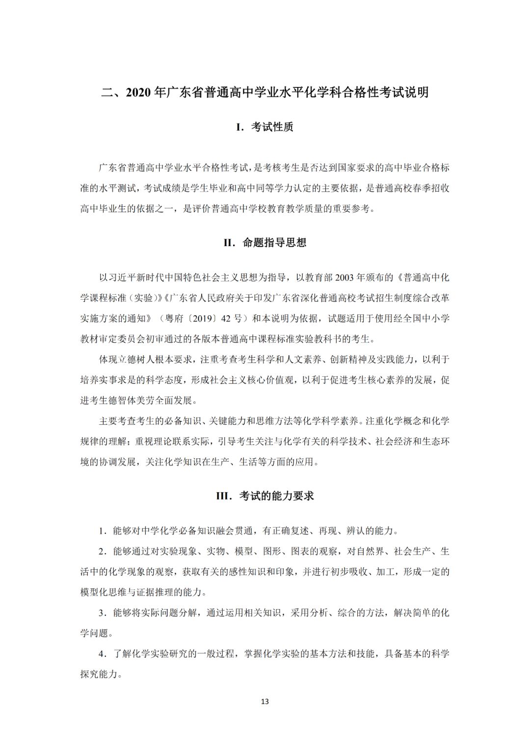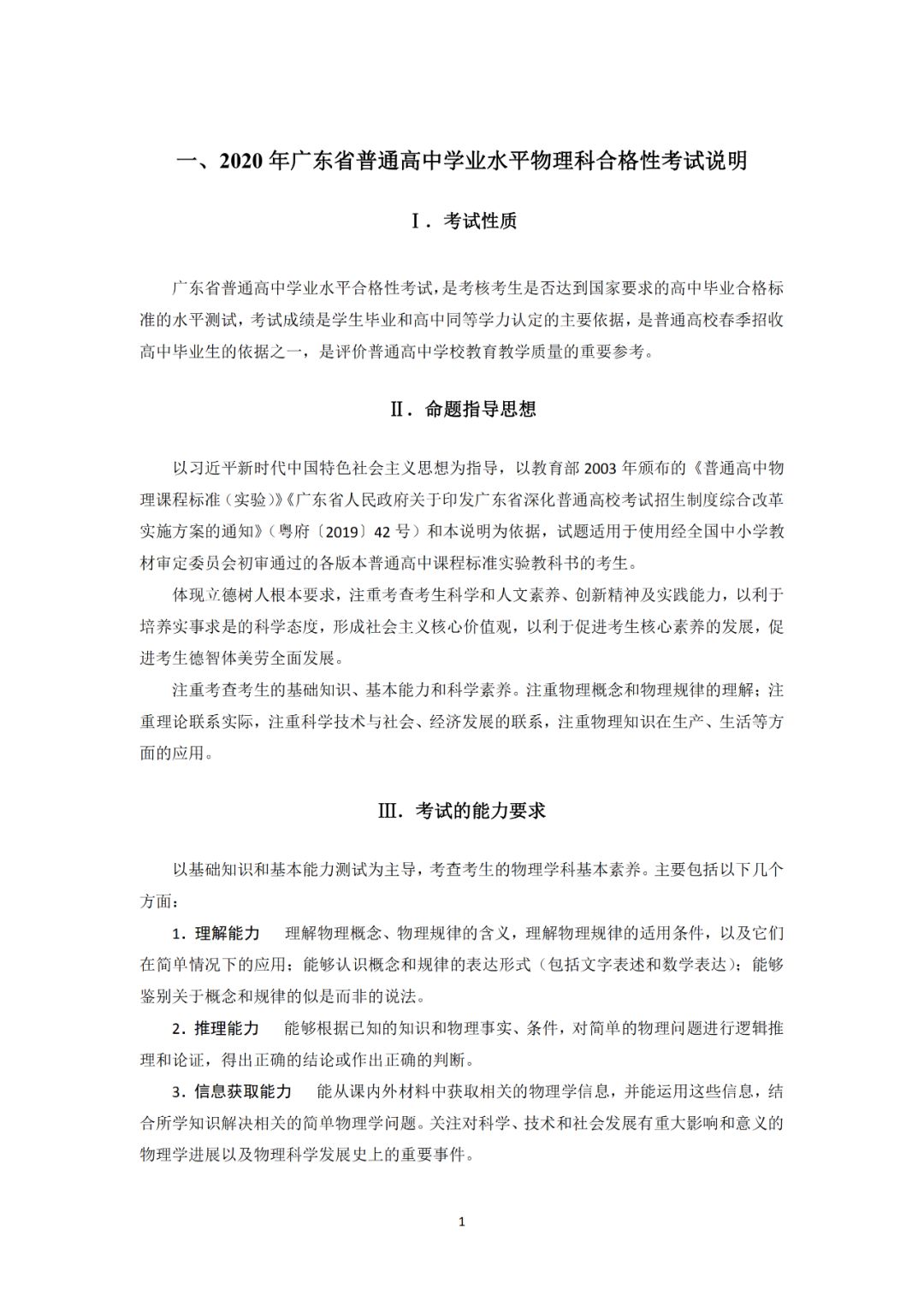 据《广东省人民政府关于印发广东省深化普通高校考试招生制度综合改革实施方案的通知》《广东省教育厅关于做好普通高中课程教材实施工作的通知》和《广东省教育厅关于印发广东省普通高中学业水平考试实施办法的通知》)等文件精神,广东省教育考试院制订了《2020年广东省普通高中学业水平合格性考试说明》,供2018年高一入学学生考试使用。