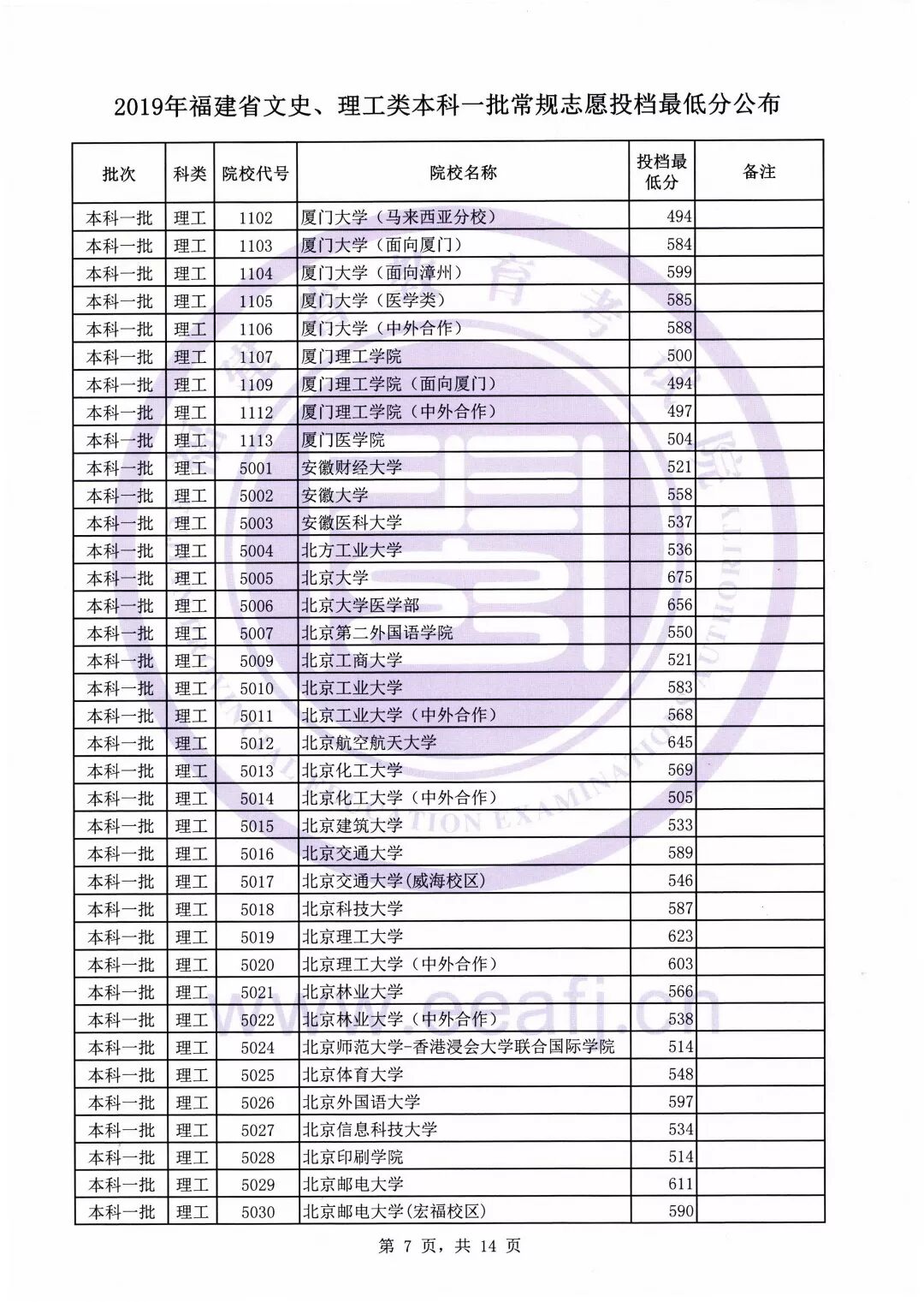 2019年福建高考文史理工类本科一批常规志愿投档,省教育考试院公布各高校最低投档线,快来一起看看吧!本一批次常规志愿录取结果预计会在7月21日后开放查询!