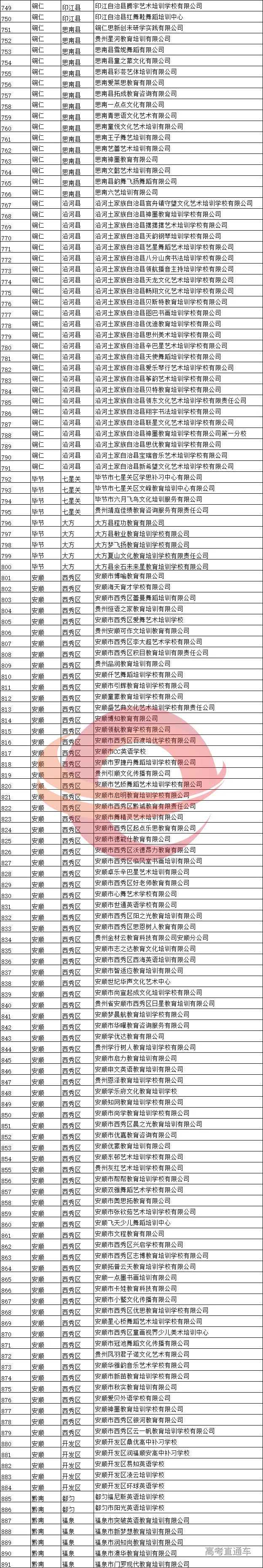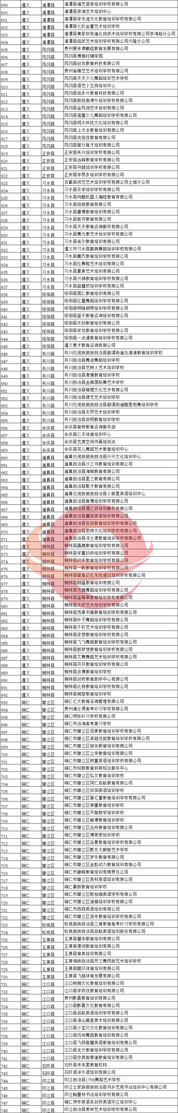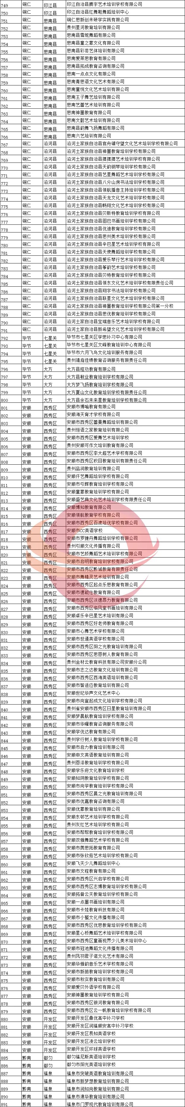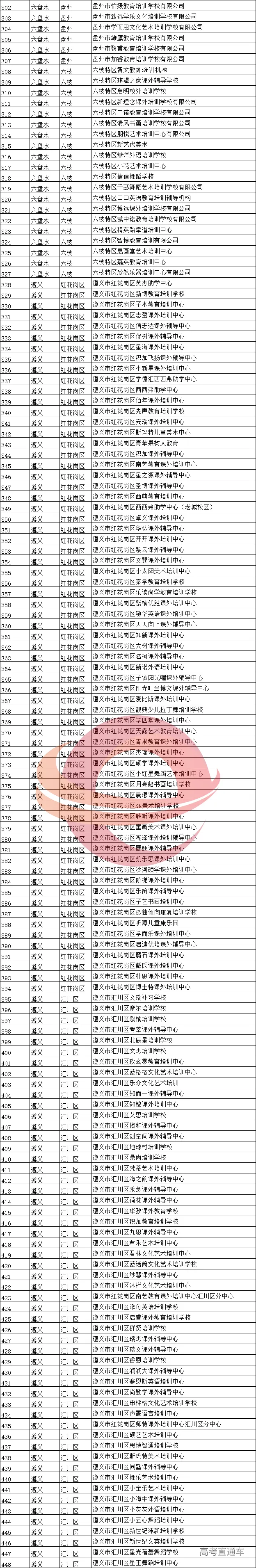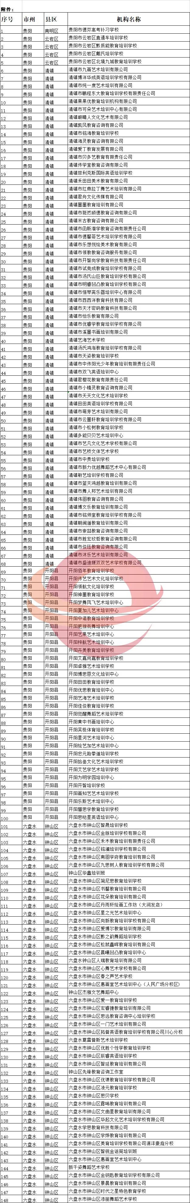 根据《国务院办公厅关于规范校外培训机构发展的意见》(国办发〔2018〕80号)、《教育部应对新冠肺炎疫情工作领导小组关于进一步做好开学方案编制的通知》(教体艺函〔2020〕2号)、《省委教育工委 省教育厅关于做好高校非毕业年级、小学及幼儿园2020年春季学期开学工作的通知》(黔教(委)发〔2020〕27号)和《贵州省面向中小学生校外培训机构恢复线下培训验收指导意见》(黔教函〔2020〕151号)有关要求,经机构申请、县级评估、市州审核、省教育厅批准,现公布全省891所恢复线下培训的校外培训机构名单(见附件)。