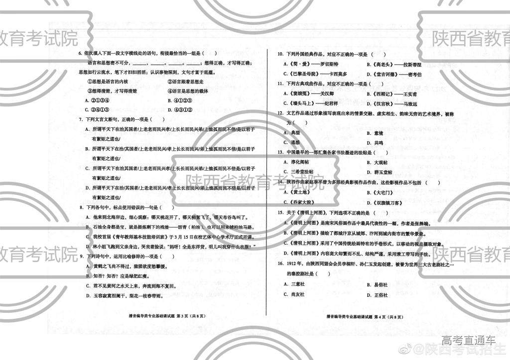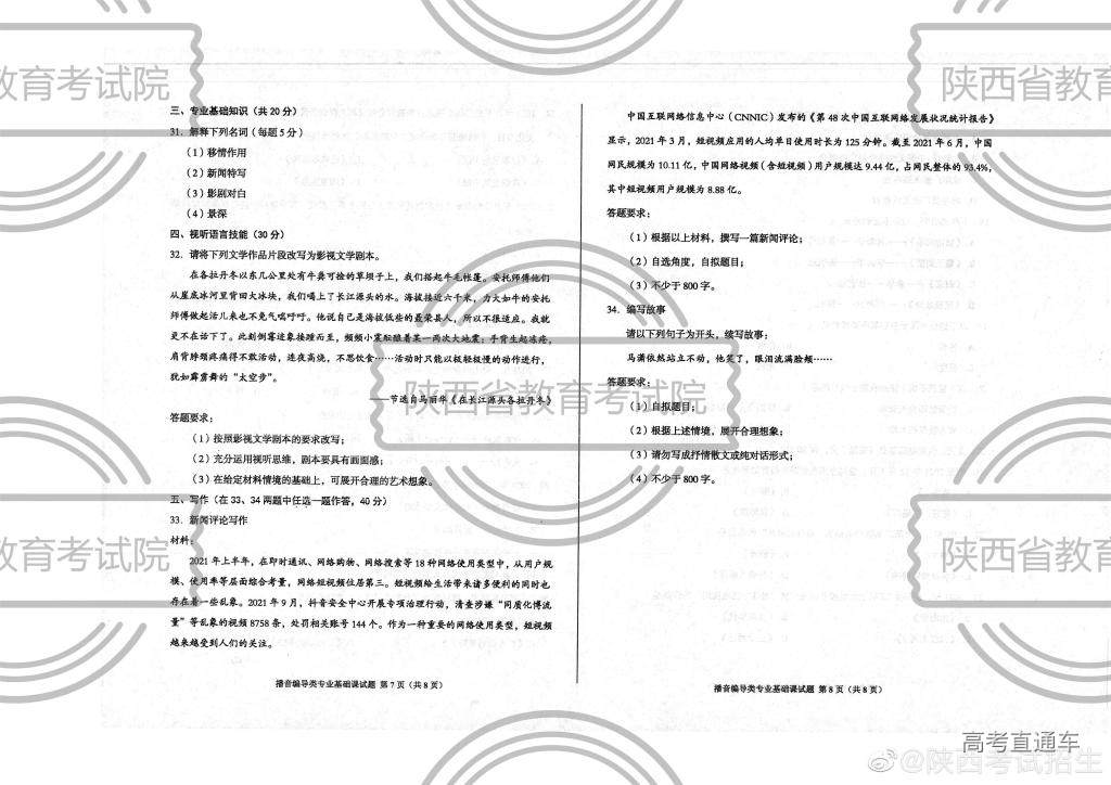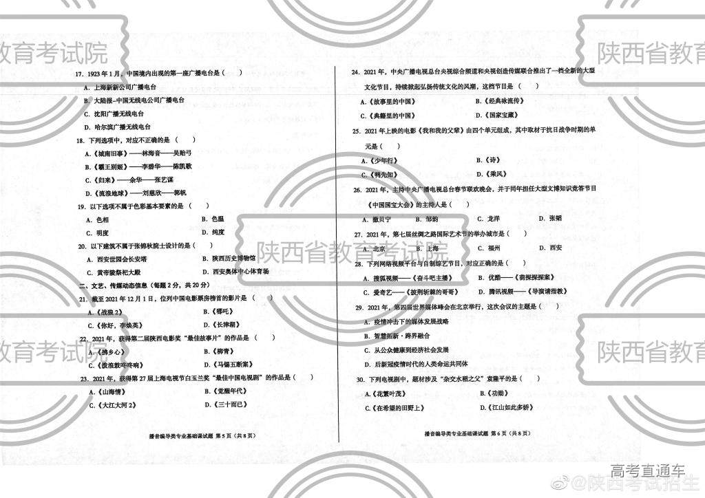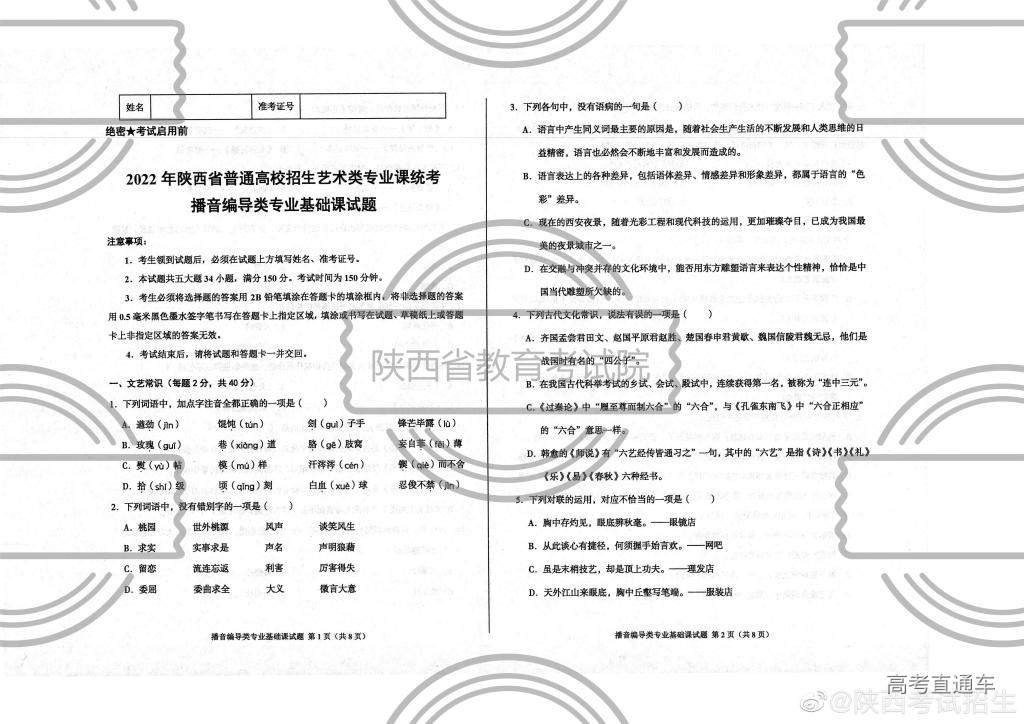 2022年陕西省高考艺术类招生播音编导类专业基础课统考试题