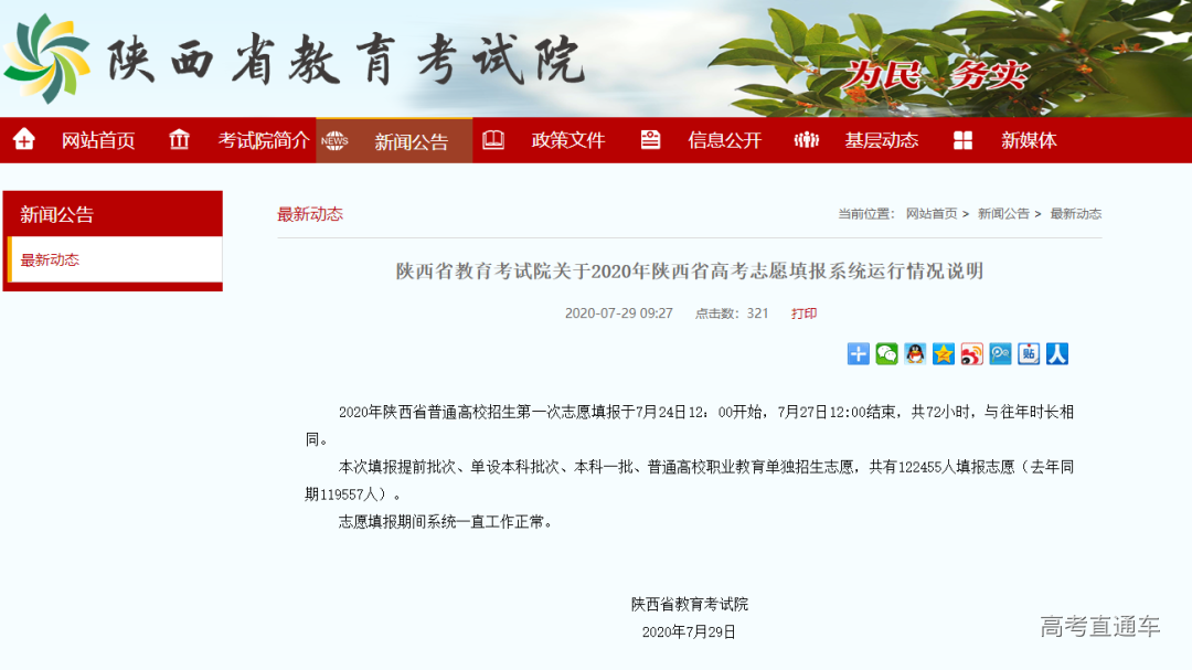 今天上午,陕西省教育考试院网站发布“关于2020年陕西省高考志愿填报系统运行情况说明”,志愿填报期间系统一直工作正常。