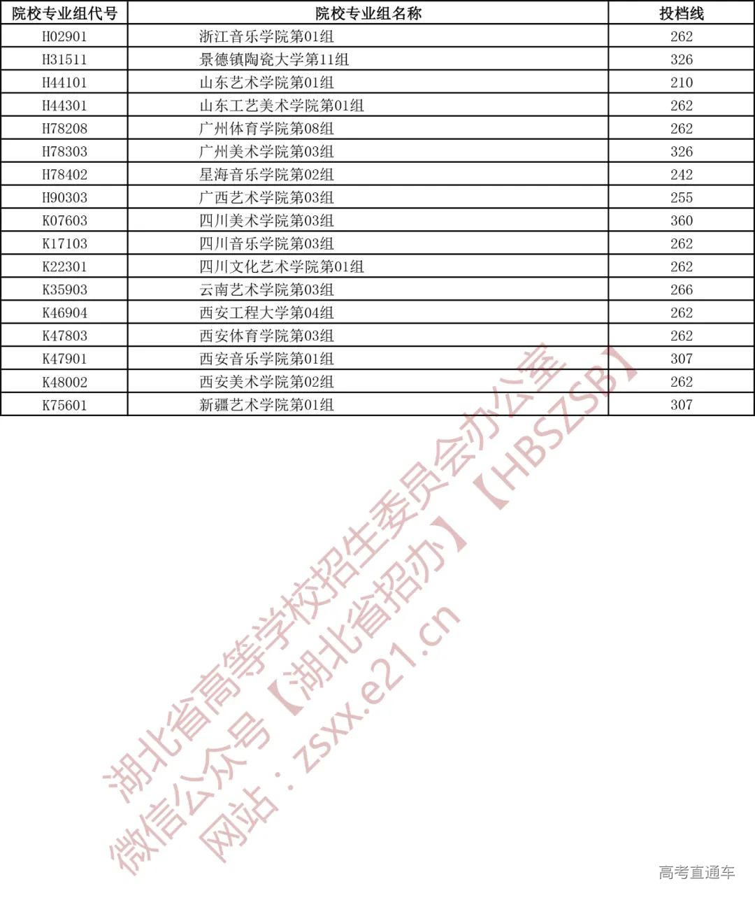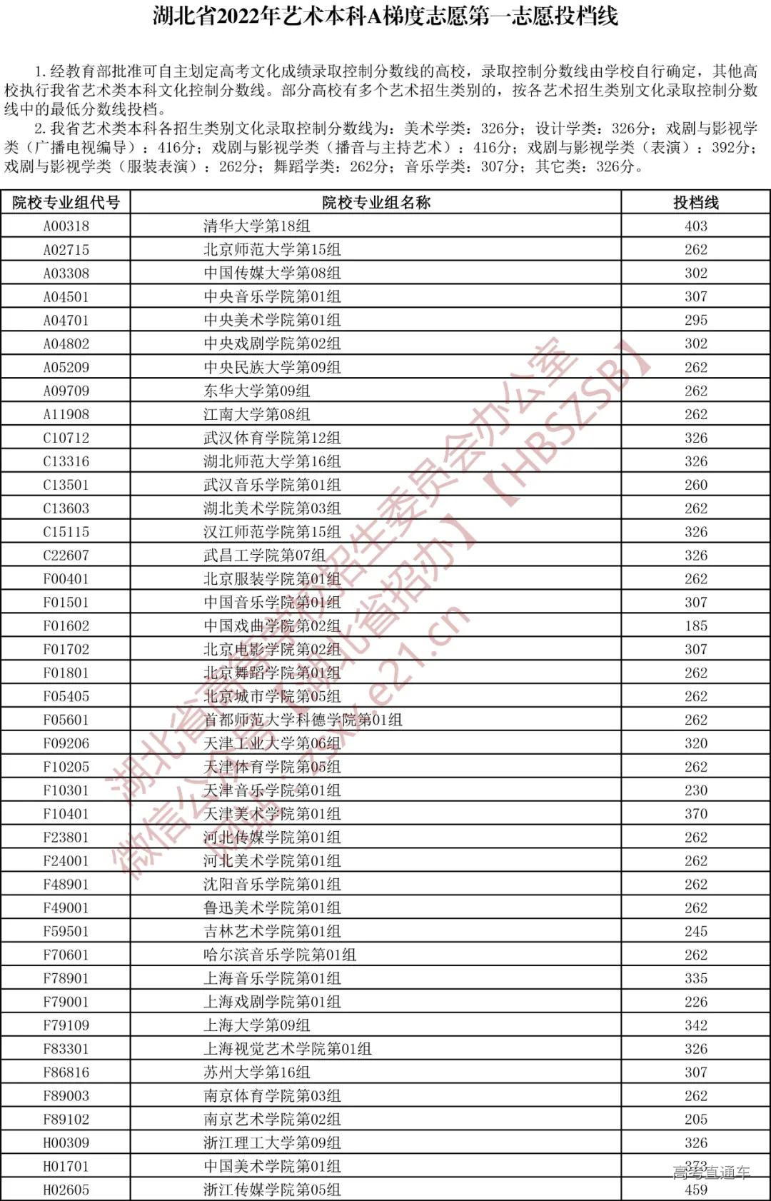 湖北省2022年艺术本科A梯度志愿第一志愿投档线
