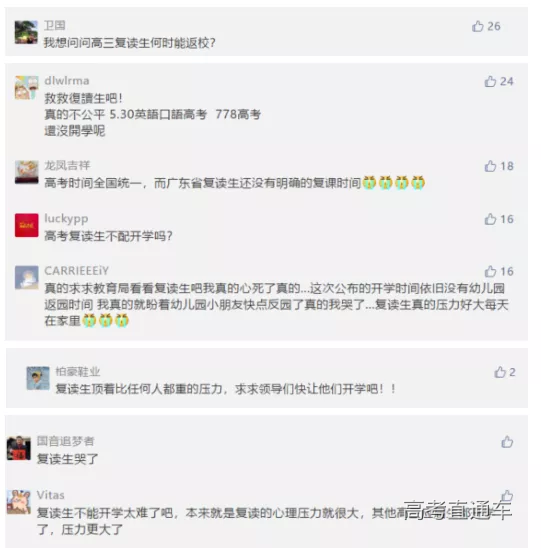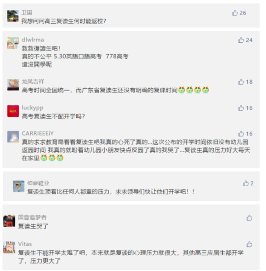 被疫情打乱的教学节奏逐渐恢复,全国各地初三、高三年级基本已经复课。各省市对于非毕业年级也陆续公布开学时间,然而,复读生们急了。高三是开学了,可是在补习机构上课的复读生们却迟迟等不到复课消息,引起争议!