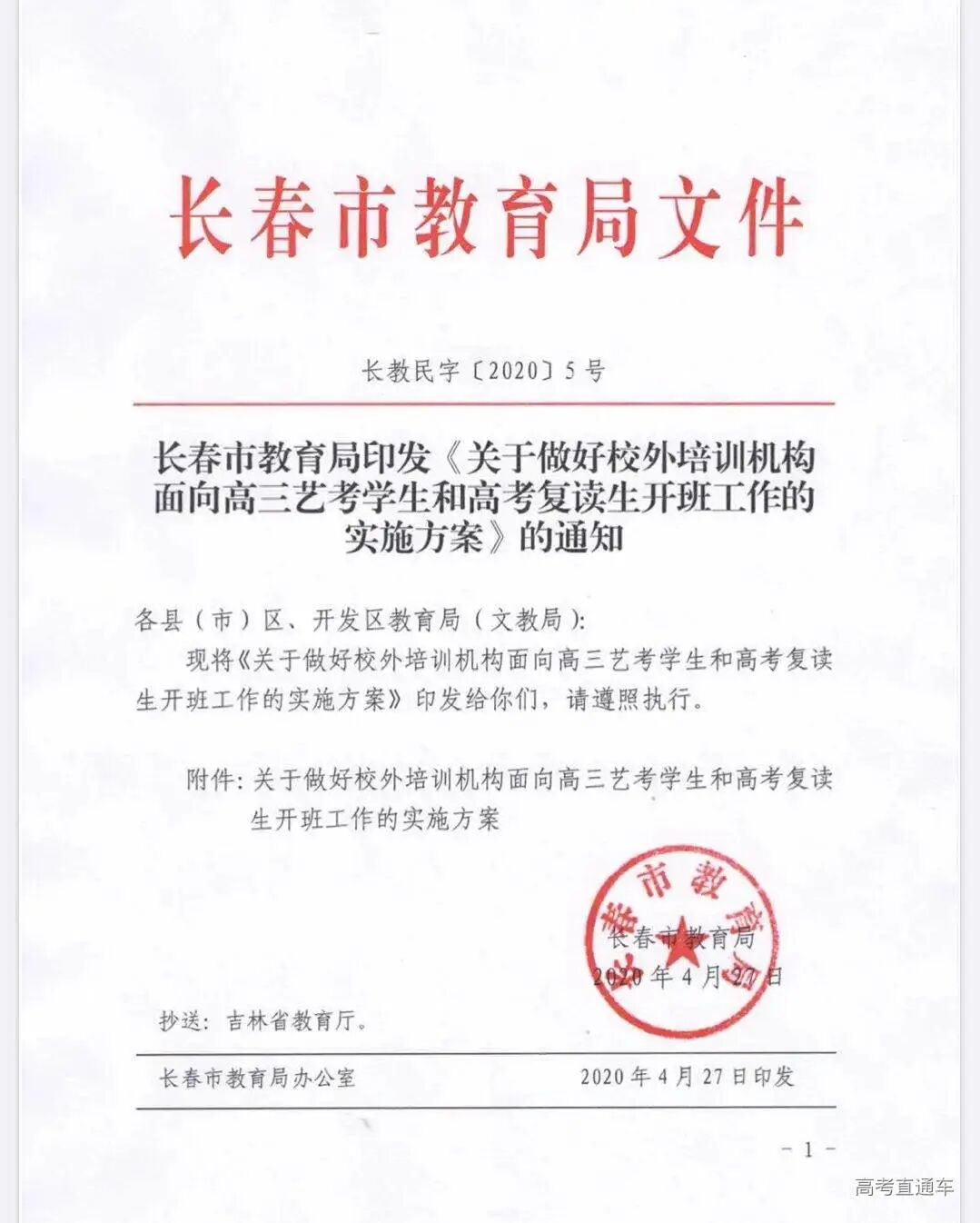 按照《关于印发吉林省各级各类学校制定错时错峰开学实施方案工作指南的通知》(吉卫明电〔2020〕185号)等相关文件要求,此次开班要参照中小学防控标准,把疫情防控工作放在首位,科学审慎研判校外培训机构开班工作,落实落细针对高三艺考生和高考复读生开展线下培训的各项防控措施,做到风险得不到控制不开班、防控条件不具备不开班、安全得不到保障不开班。