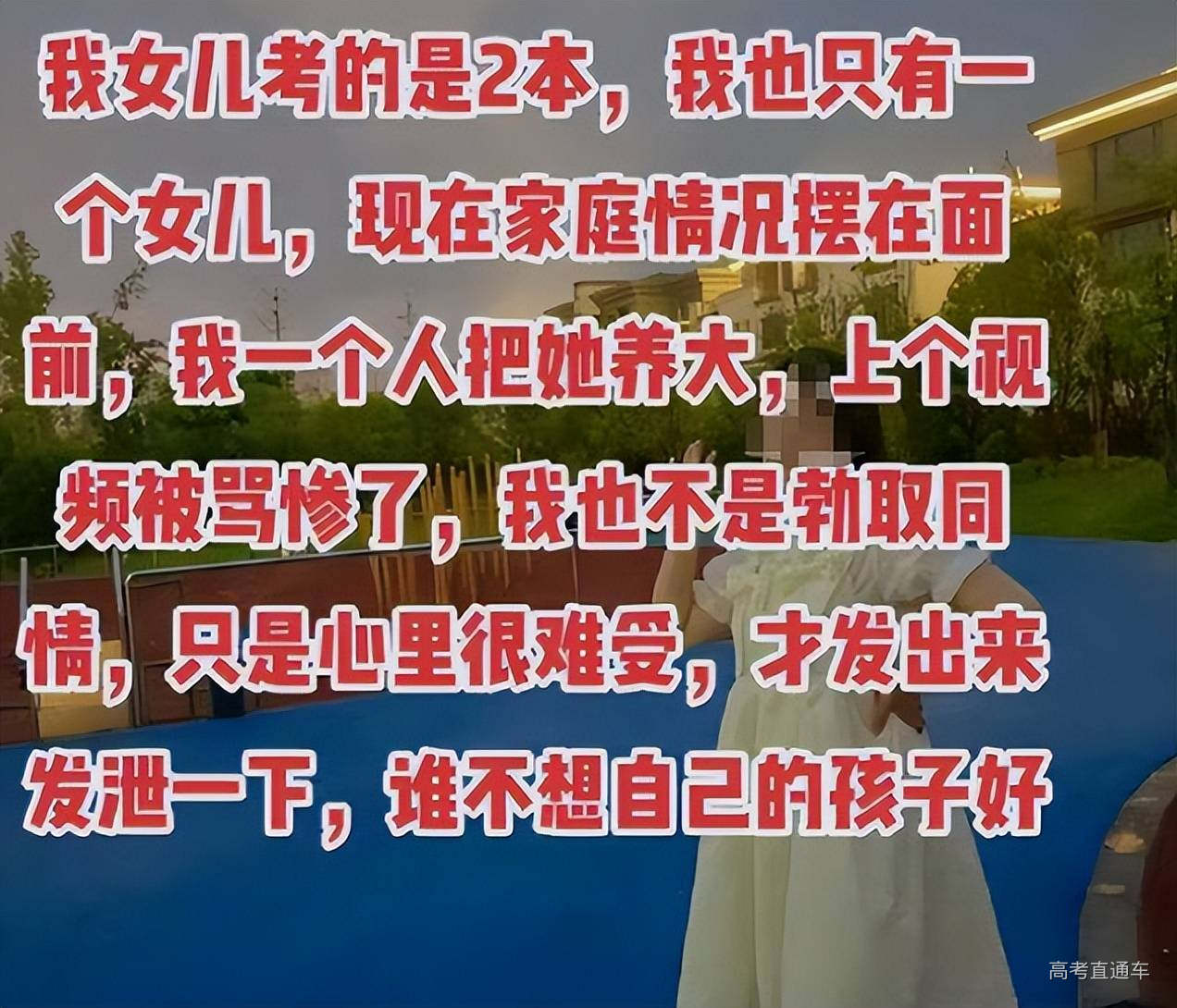母亲还表示称,谁不想让自己的孩子好一点?但无奈自己是个单亲妈妈,一个人能养活孩子就很不错了,供女儿上大学实在无力承担。