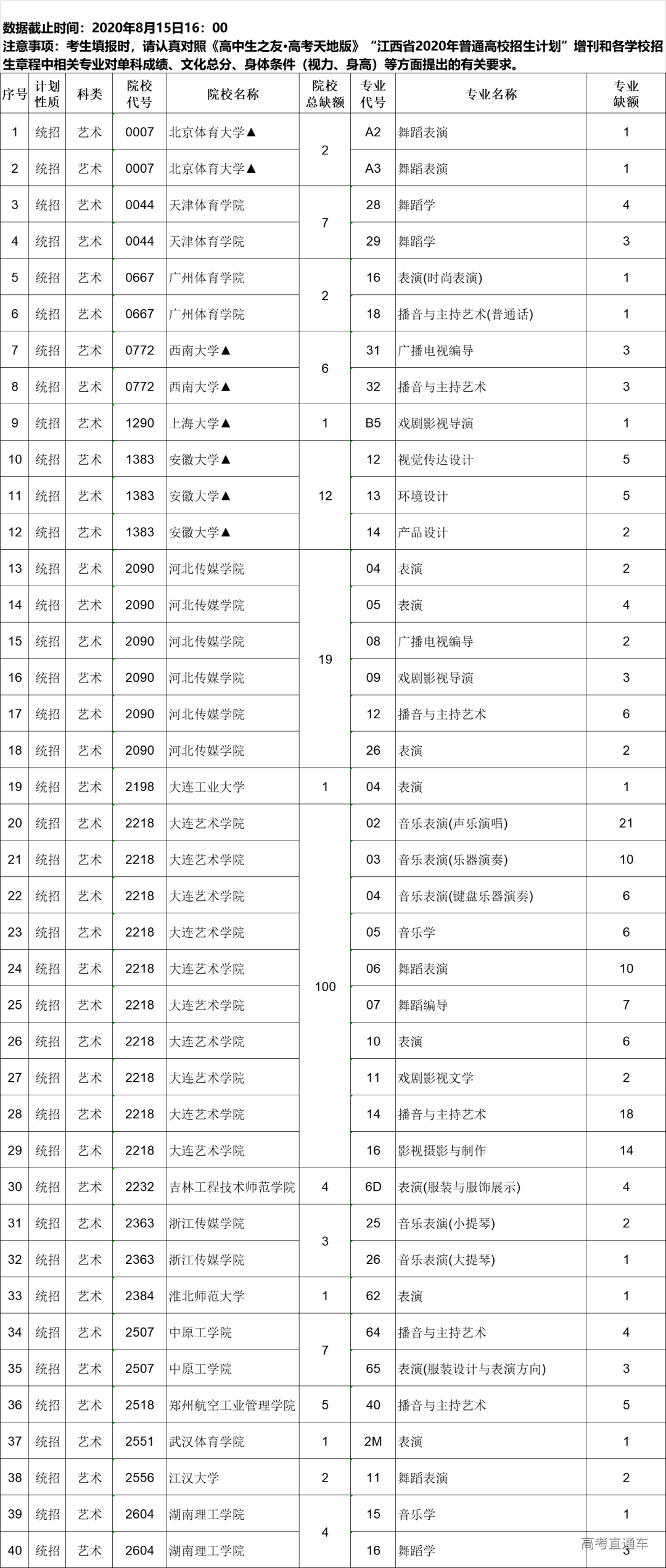 7.考生填报时,还请认真对照《高中生之友•高考天地版》“江西省2020年普通高校招生计划”增刊和各高校招生章程,把握相关专业对高考文化成绩(含单科成绩)、身体条件(视力、身高等)等方面提出的有关要求。