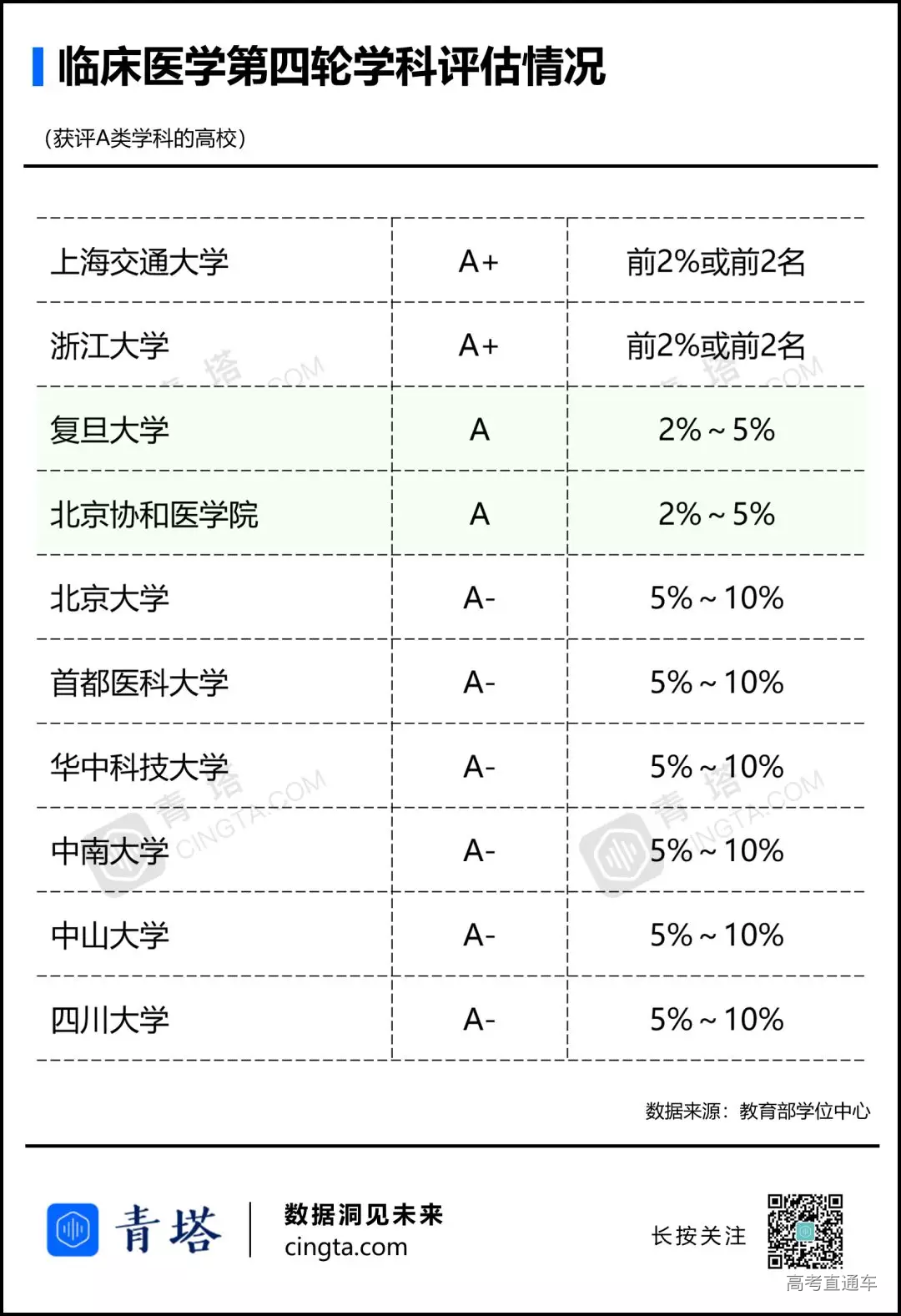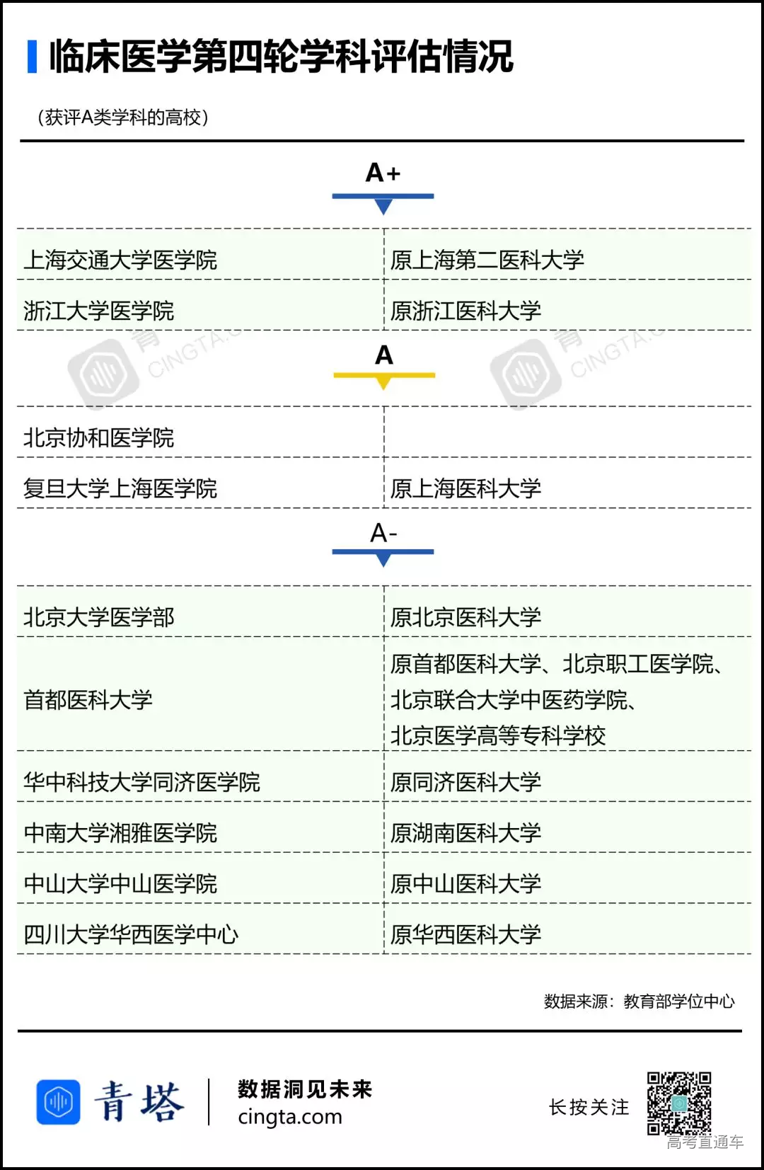 而一级学科“临床医学”获评A类学科的10所高校中,却仅有北京协和医学院、首都医科大学2所医科大学上榜,其余高校全部为综合类大学。