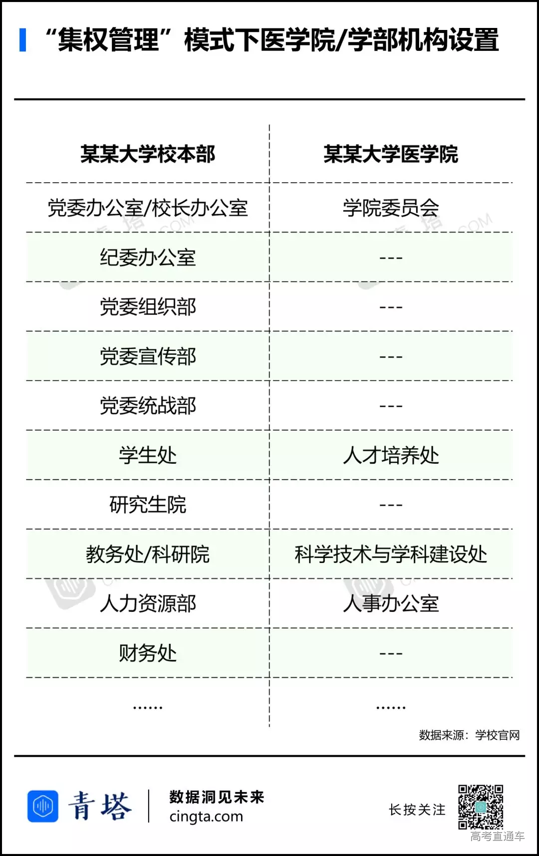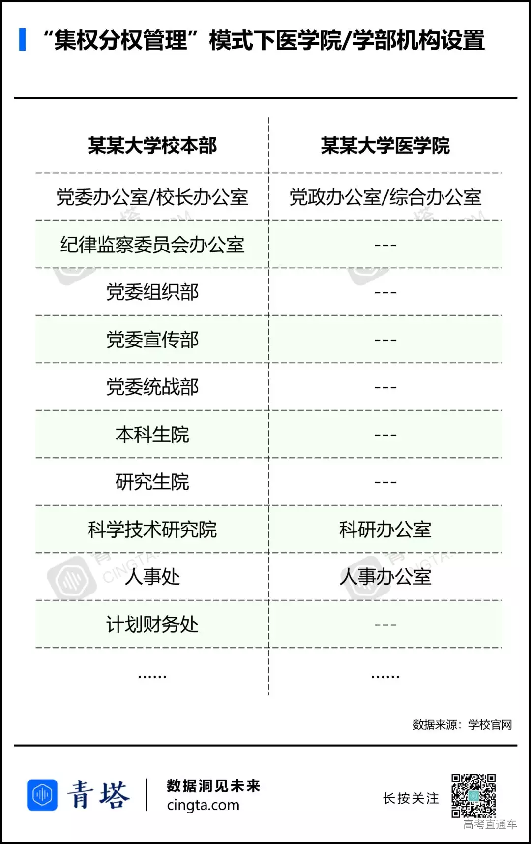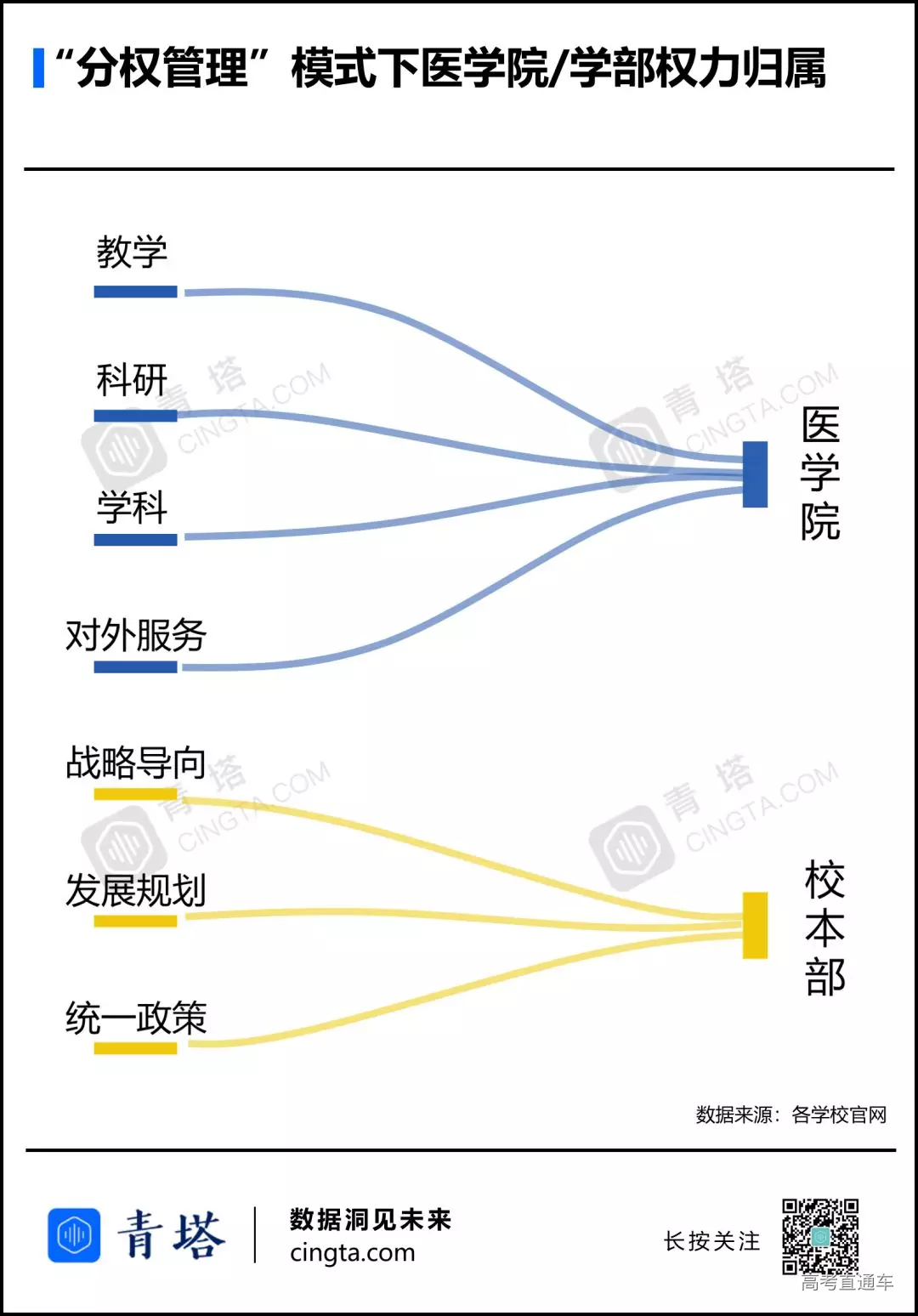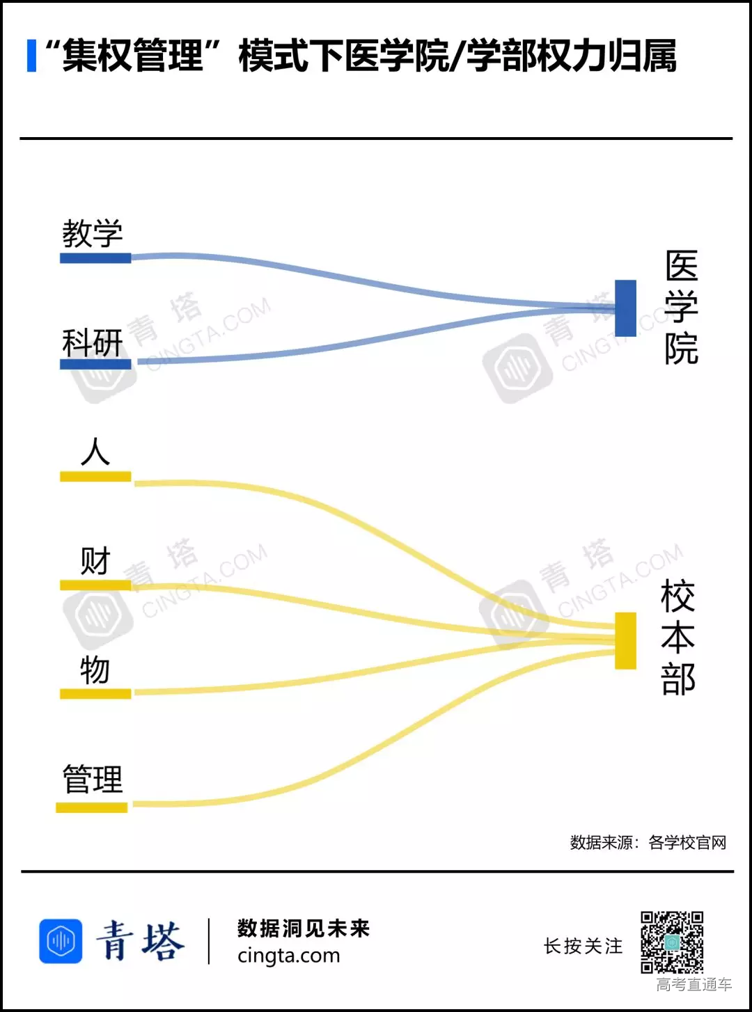 另外一些高校为了更好地利用和配置资源,提高效率,选择对医学部进行集权管理。
