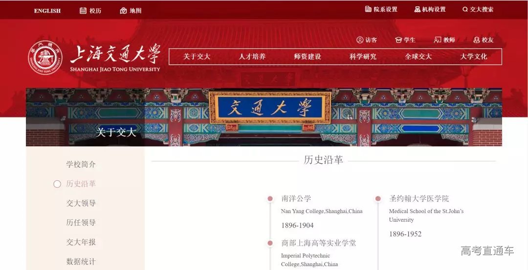 上海交通大学的主页上,原上海第二医科大学的前身圣约翰大学医学院,与上交的前身南洋公学在同一年诞生,一直是2条完全平行的线,直到2005年第一次相交,上海第二医科大学自此消失,取而代之的是上海交通大学医学院。